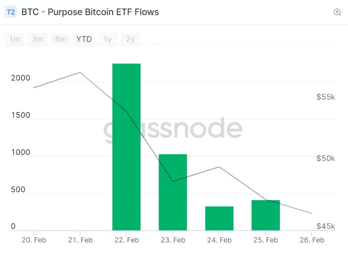 Purpose Investments now holds over 10,000 Bitcoin in just a week after the launch of its Bitcoin exchange-traded fund product, data from on-chain analytics service Glassnode shows. It's touted as the world’s “first” Bitcoin ETF.