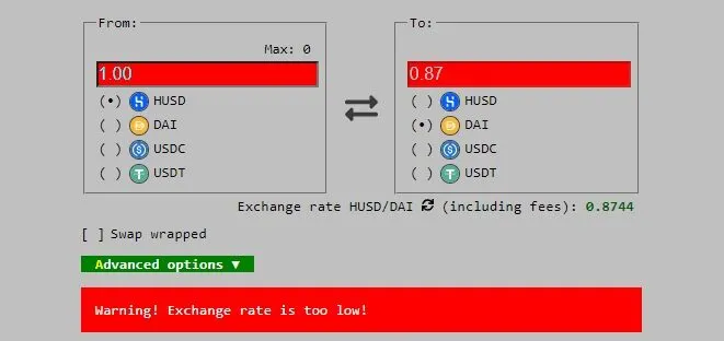The depegging has resulted in HUSD’s liquidity on the Curve 3pool (3Crv) skewing, with the decentralized exchange issuing a warning that the current exchange rate for the stablecoin "is too low."