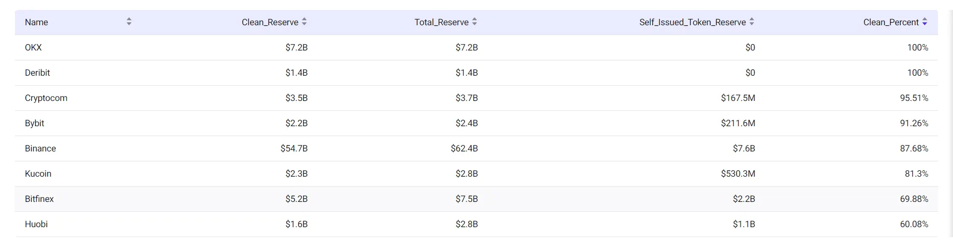 As explained by OKX, asset reserves are considered “clean” when a third-party analysis—in this case the metric provided by CryptoQuant—determines the reserves do not include an exchange's native token and are made up exclusively of high-market cap “traditional” cryptocurrencies such as BTC, ETH, and USDT.