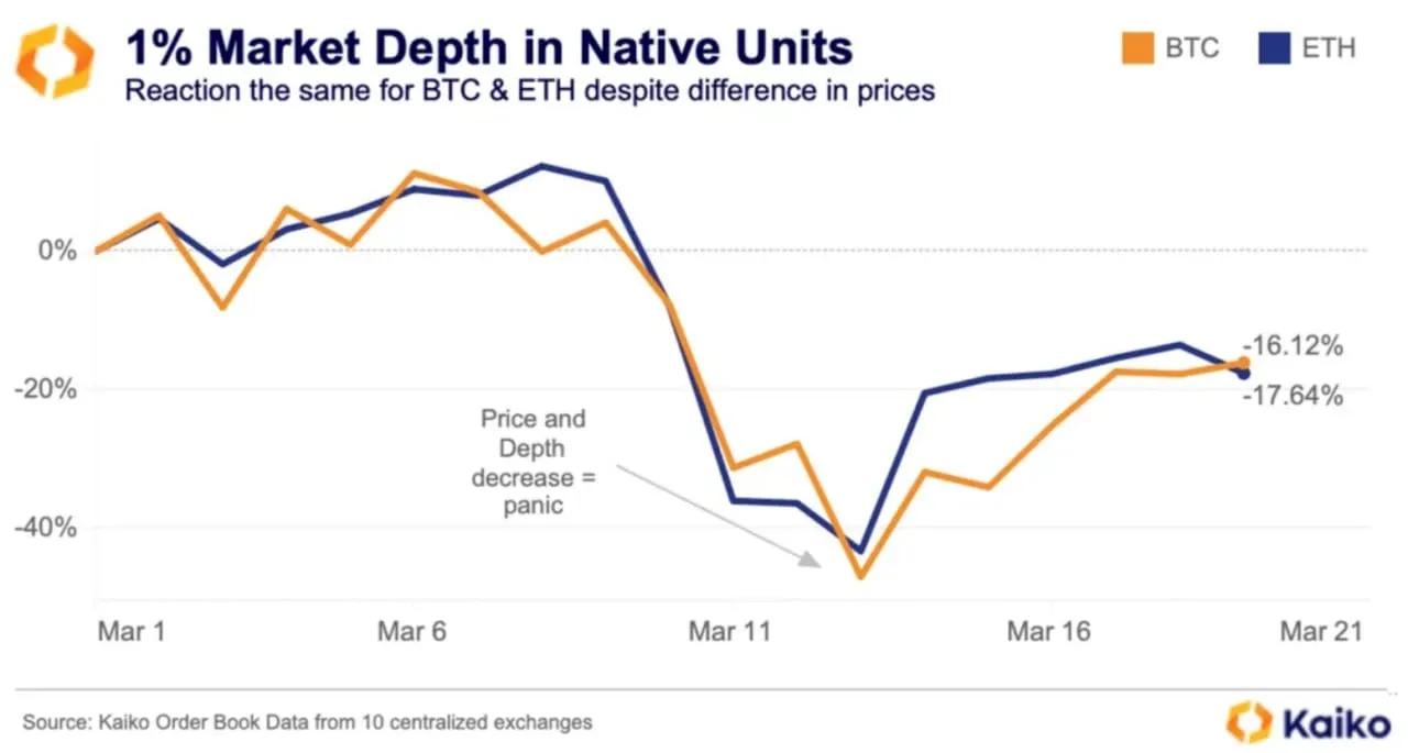The liquidity crunch is also causing inefficiencies such as high slippage and larger spreads. Coinbase’s BTC-USD pair currently exhibits nearly three times higher slippage than at the start of March.