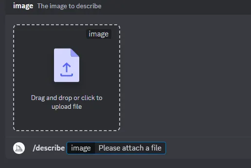 Describe works like any other Midjourney command, but instead of /imagine, a creator uses /describe. After entering the command, a drop/drag box will come up, letting the creator upload a picture they want to use as the basis for their creation.