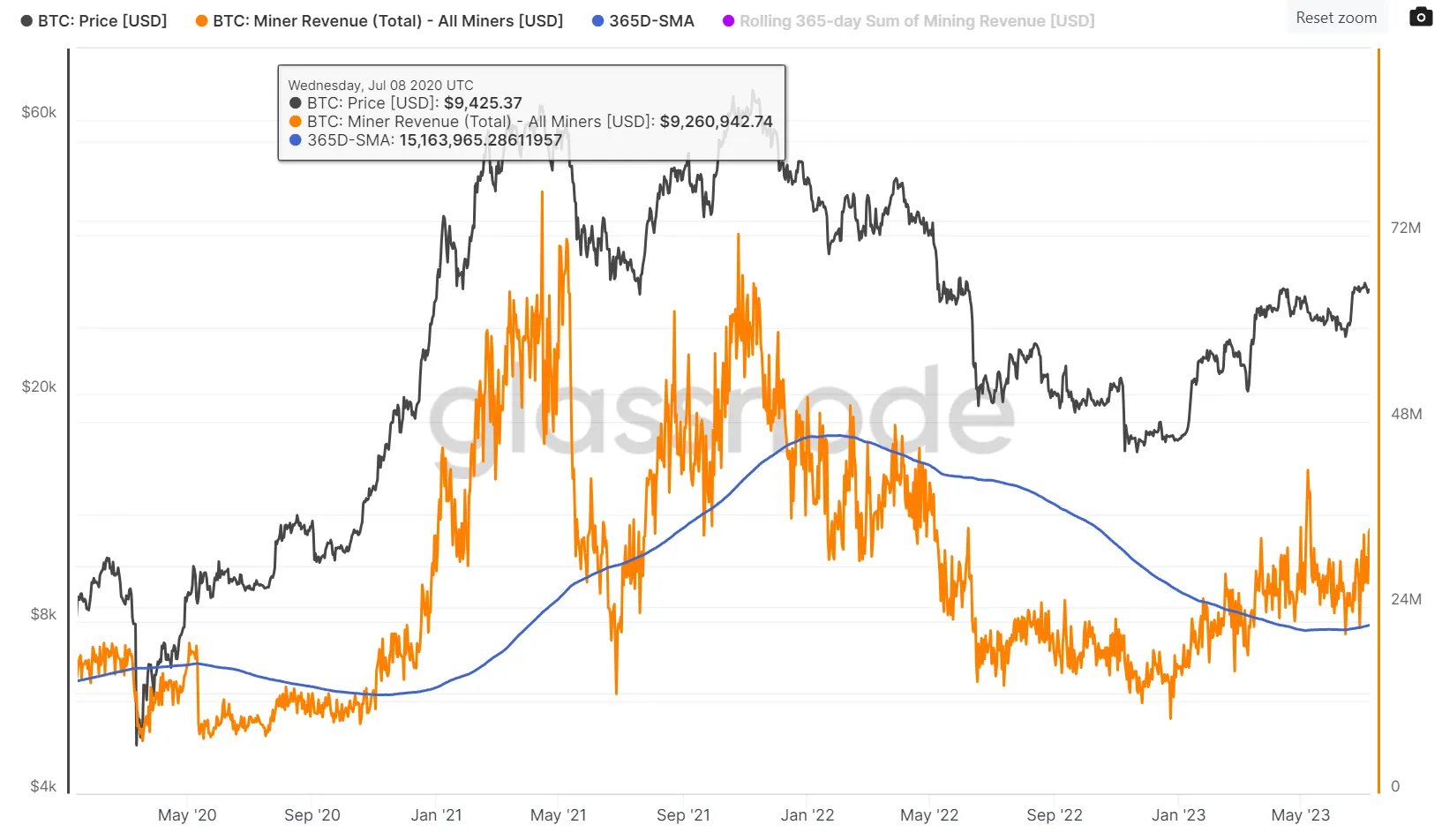 Bitcoin is up 82% year to date, from $16,600 on January 1 to $30,280 at writing time. Since miners are rewarded with a fixed number of BTC (6.25) per block, such bullish price momentum has helped boost the industry’s revenue since the start of the year, reversing negative momentum amid declining revenue in 2022.