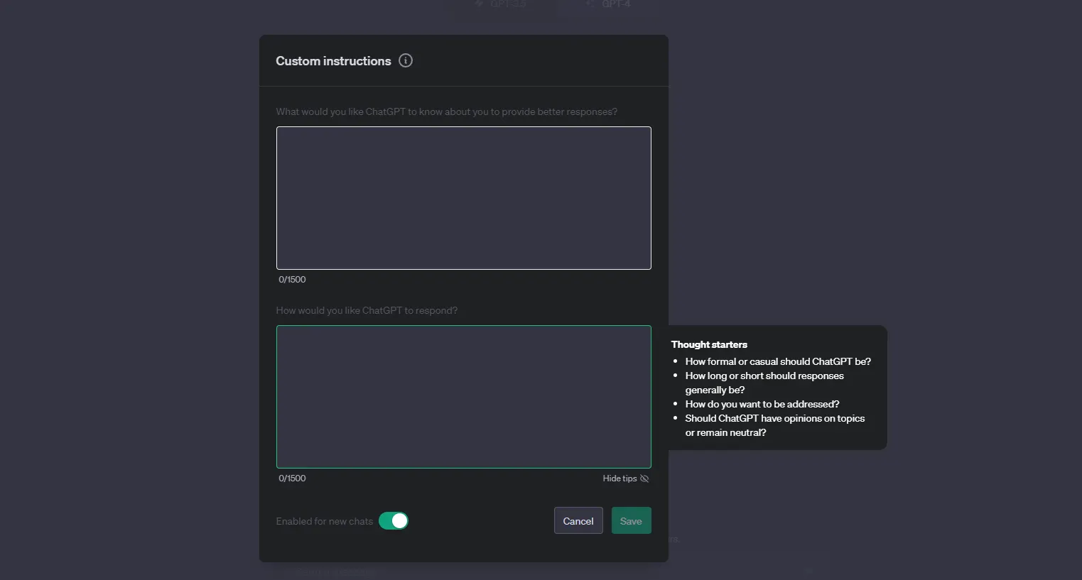 After entering this information, users can set parameters like the formalness of the response, how the chatbot should refer to the user, and how opinionated ChatGPT should be in its responses.