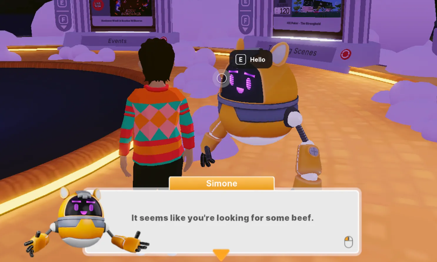 Simone the Robot can respond to queries and offer info and discussion about the metaverse, while the buff, meme-inspired Doge is a more lighthearted character. Lastly, Aisha—described as a “23-year-old gaming streamer and former skater”—comes with her own backstory and opinions.