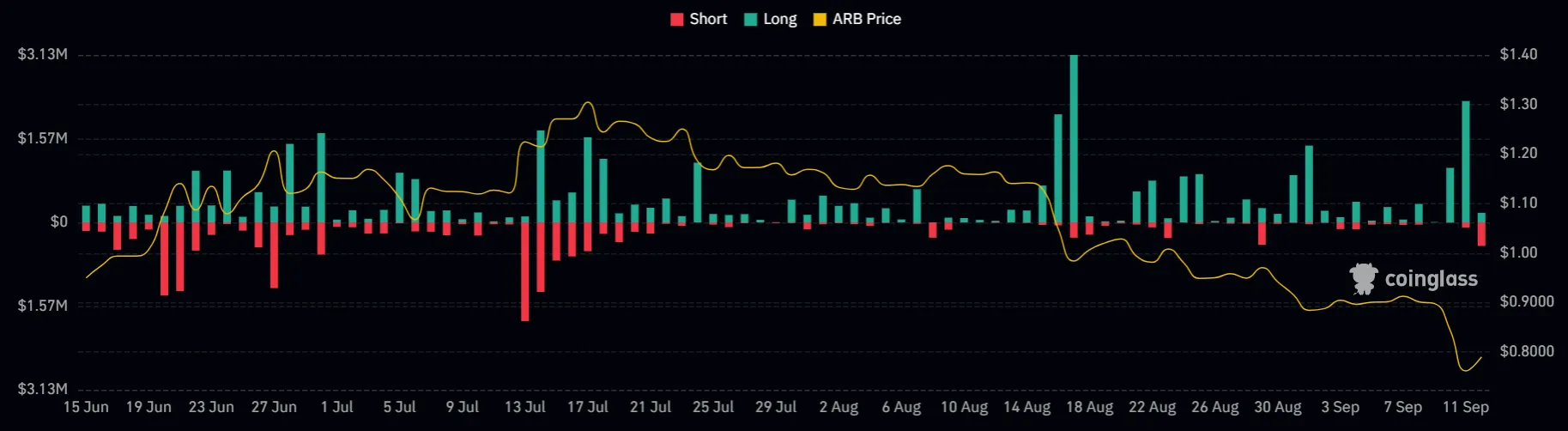 The flipping of the two projects’ market caps occurred due to considerable liquidations of ARB long orders. CoinGlass data shows $2.2 million longs were liquidated on Sept. 11, levels not seen since August’s flash crash.