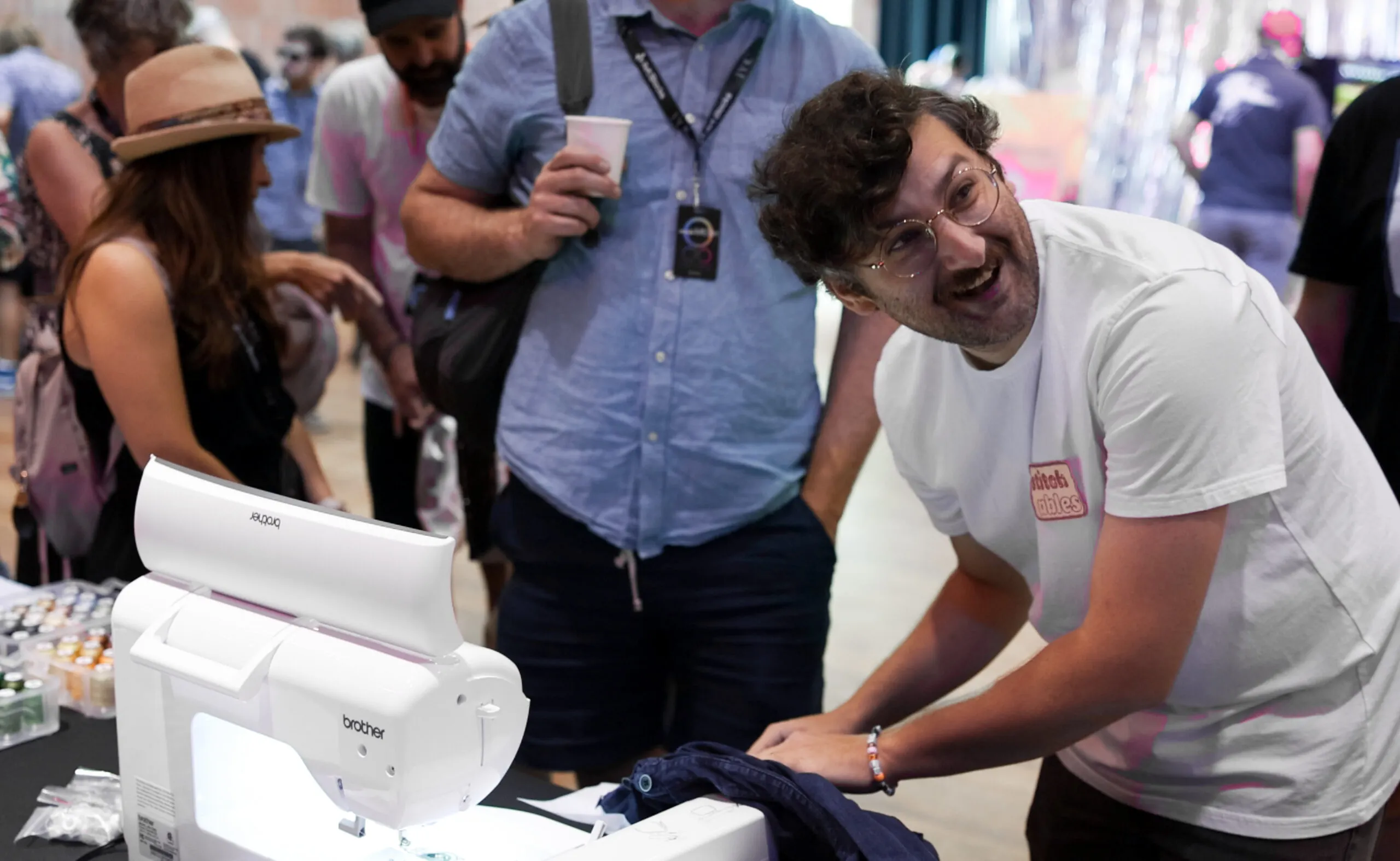 Projects on display included “Stitchables,” a generative embroidery pop-up from Luke Shannon and Matt Jacobson (pictured below) that invited passers-by to adorn their own shirts with algorithmically crafted patterns and patches. Shannon and Jacobson are set to soon launch a Stitchables platform using Art Blocks Engine infrastructure.