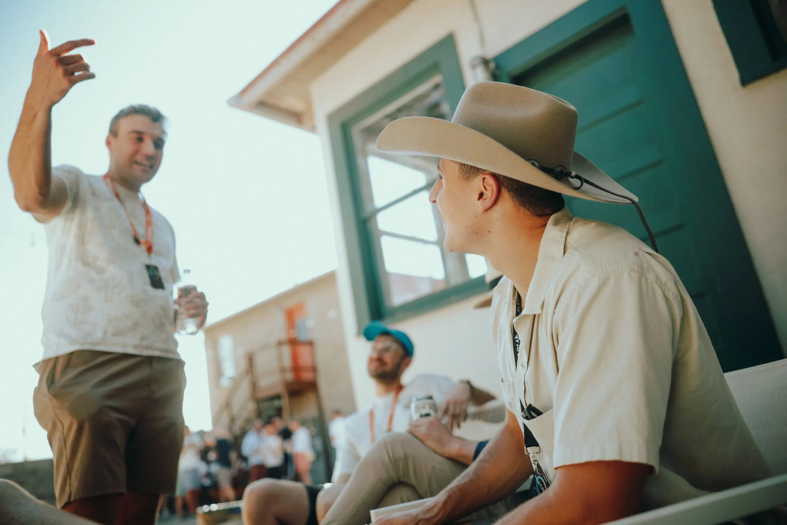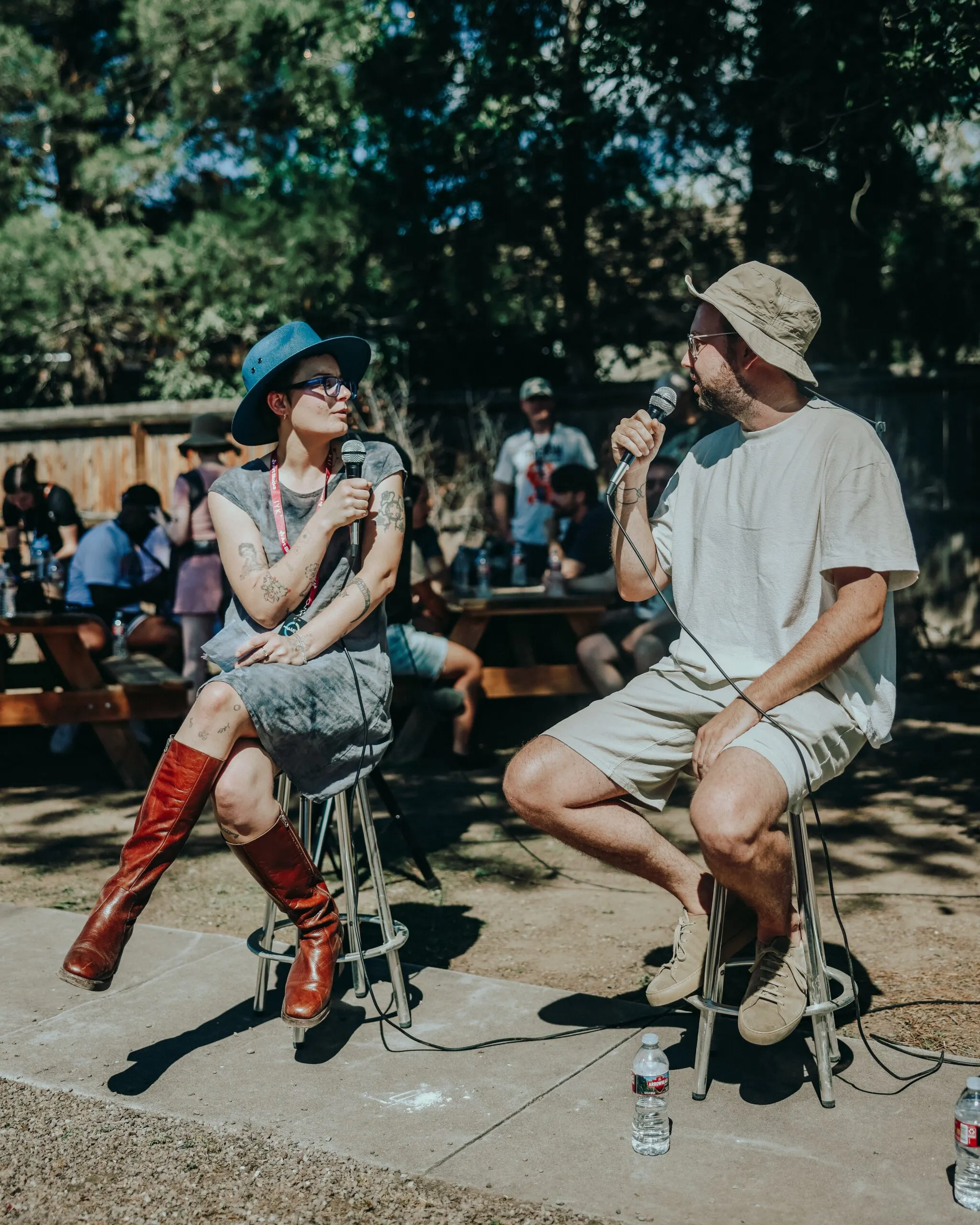 Listeners in the gallery’s backyard hid under any shade they could find to dodge the beating desert sun as artists Harvey Rayner and Shane Richardson detailed their collaboration on their latest project, “MarfaMESH”—the latest installment in Art Blocks’ Explorations series, which encourages artists to tinker with less formal artistic experiments designed to delight and engage.