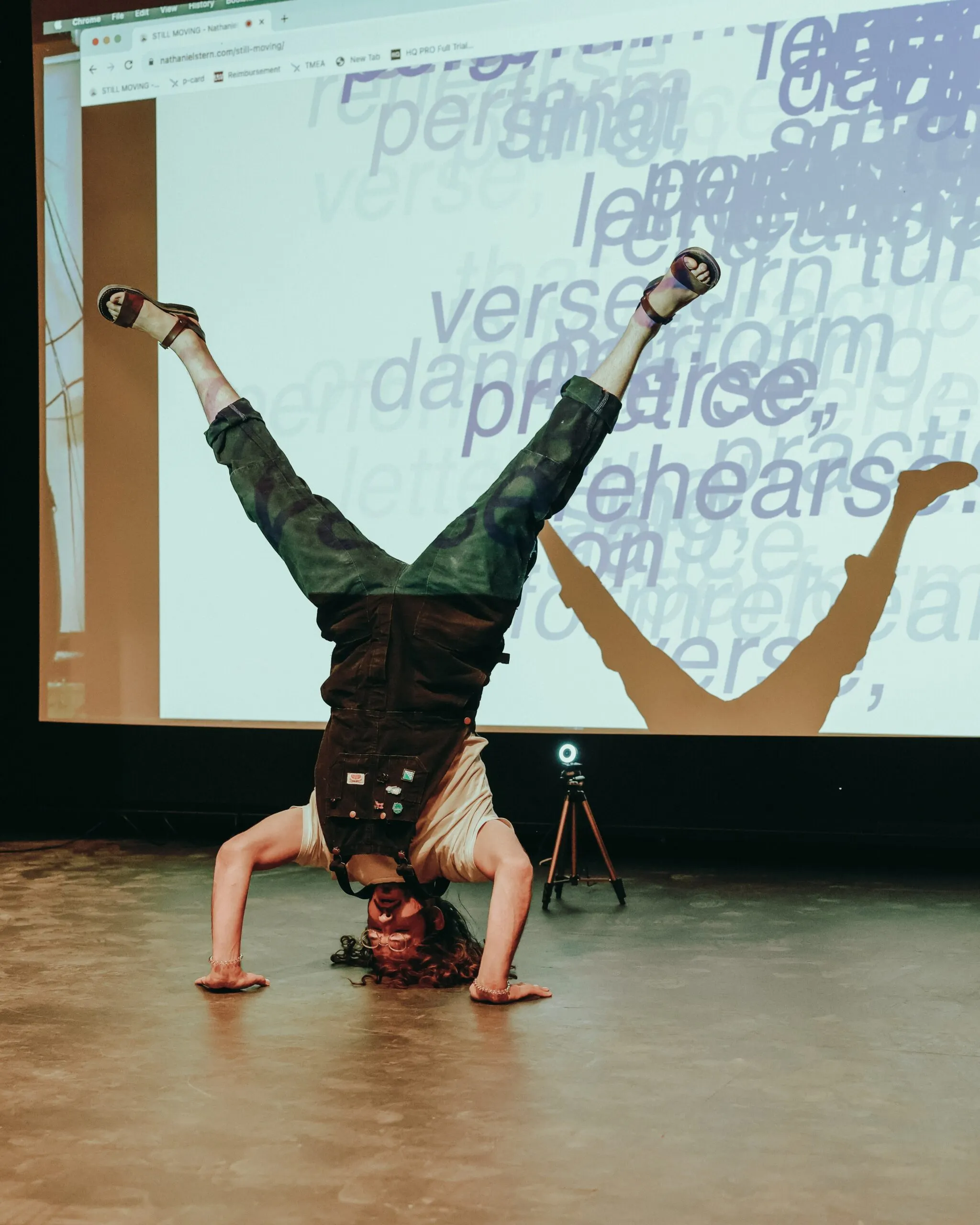 Poet-technologists Nathaniel Stern and Sasha Stiles first performed a live rendition of “Still Moving,” a full-body, interactive AI-powered poem that explored the daily dance humans perform in transitioning from analog to digital and back.