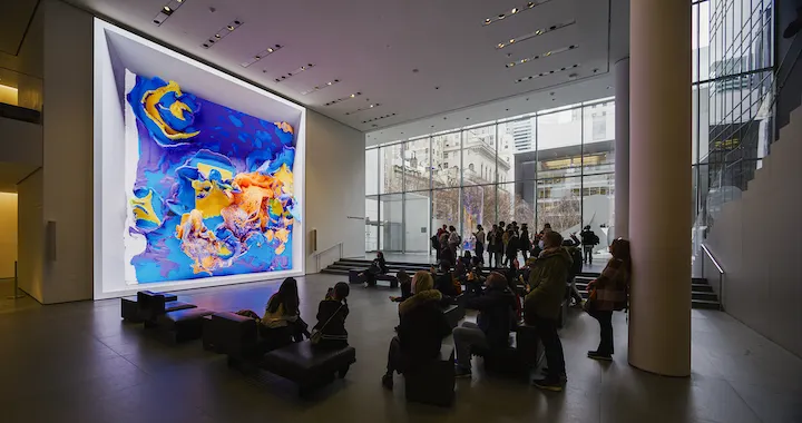 The New Yorker called it "one of the most crowd-pleasing—and controversial—exhibitions in New York City." While the pulsing, 24-foot-tall video artwork has captivated viewers inside the museum, it has also yielded conversations around the role of AI and other modern tools in creating art—and how institutions should approach and categorize such creations.