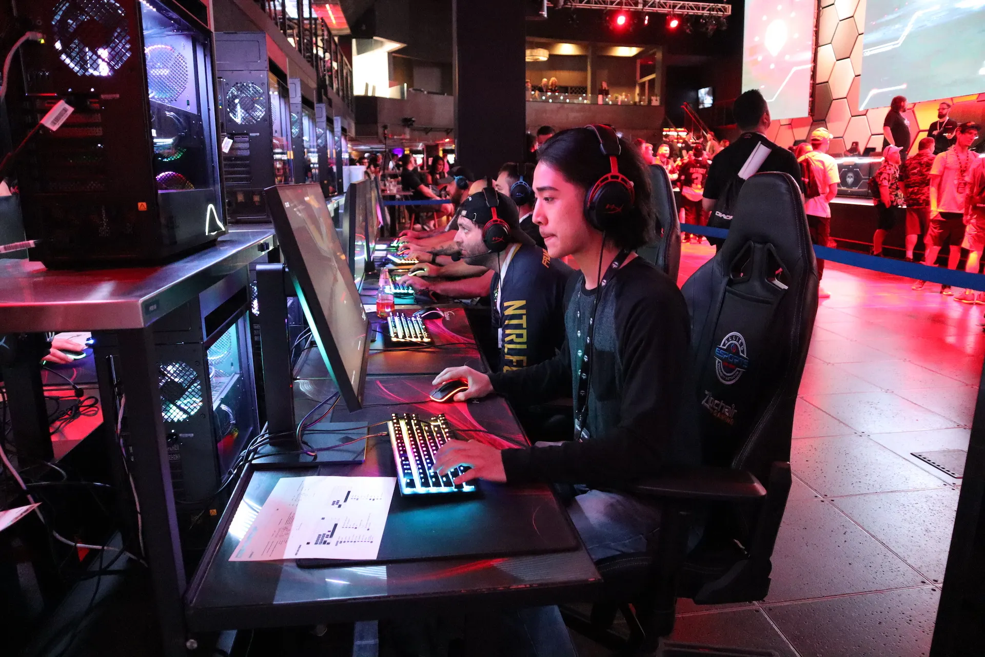 Fans attending Midnight Society’s Snapshot VII event were whisked off a hectic, carpeted casino floor at the pyramid-shaped Luxor hotel and into a slick, modern space. Deadrop merch hung around the entrance, which ushered guests toward a darkly-lit, two-tiered space that felt like a futuristic nightclub-turned-esports arena.