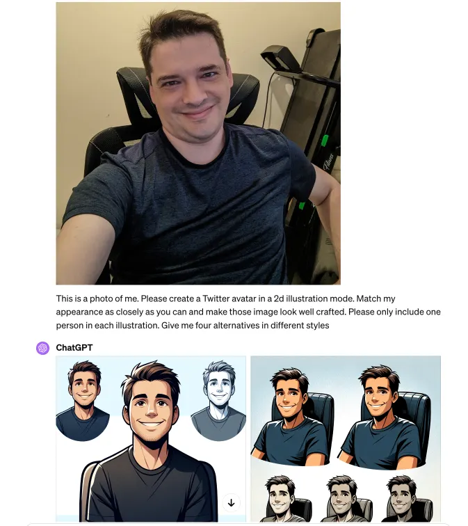 Ever wanted to star in your own animated series or game? ChatGPT can now take your selfie, analyze it with Vision, and craft it into a range of avatars, echoing your likeness into digital forms using DALL-E 3.