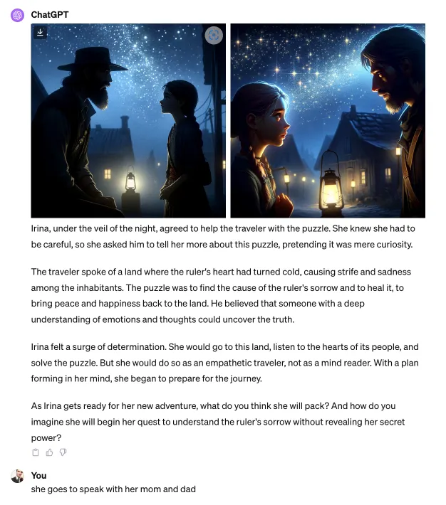 It is a great tool to help you bond with your little kids who ask you for a nice bedtime story. Ask it later for illustrations to fit the narrative, combine GPT-4 with DALL-E 3, and you have the makings of a custom book your little ones can treasure.