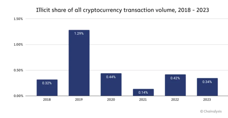 Stolen cryptocurrency, Chainalysis said, accounted for 0.34% of total on-chain transactions in 2023 and totaled $24.2 billion compared to 0.42%, or $39.6 billion in 2022. The total for 2023 included funds sent to addresses the firm identified as “illicit” and funds stolen in hacks.