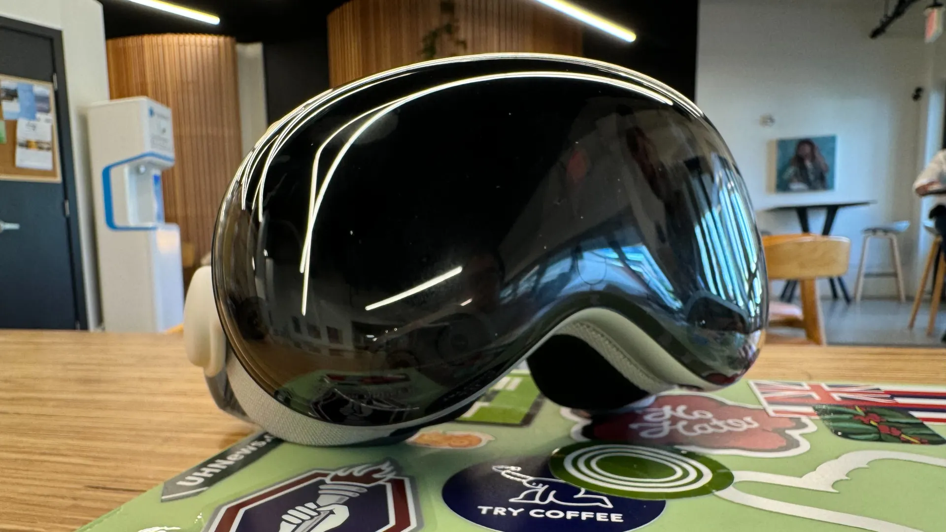 I expected the 180-degree screens to fill my human viewport, but there is still a hazy black border around everything. It's not as bad as looking through a pair of binoculars, but it's not like looking through glasses or a window, either. And since the "real world" you see is being re-broadcast from cameras, the usual problems are still in play: motion blur, hard-to-read text, and low-light struggles. The Apple Vision Pro can get pretty bright, but the real world still makes you squint and blink when you take it off.