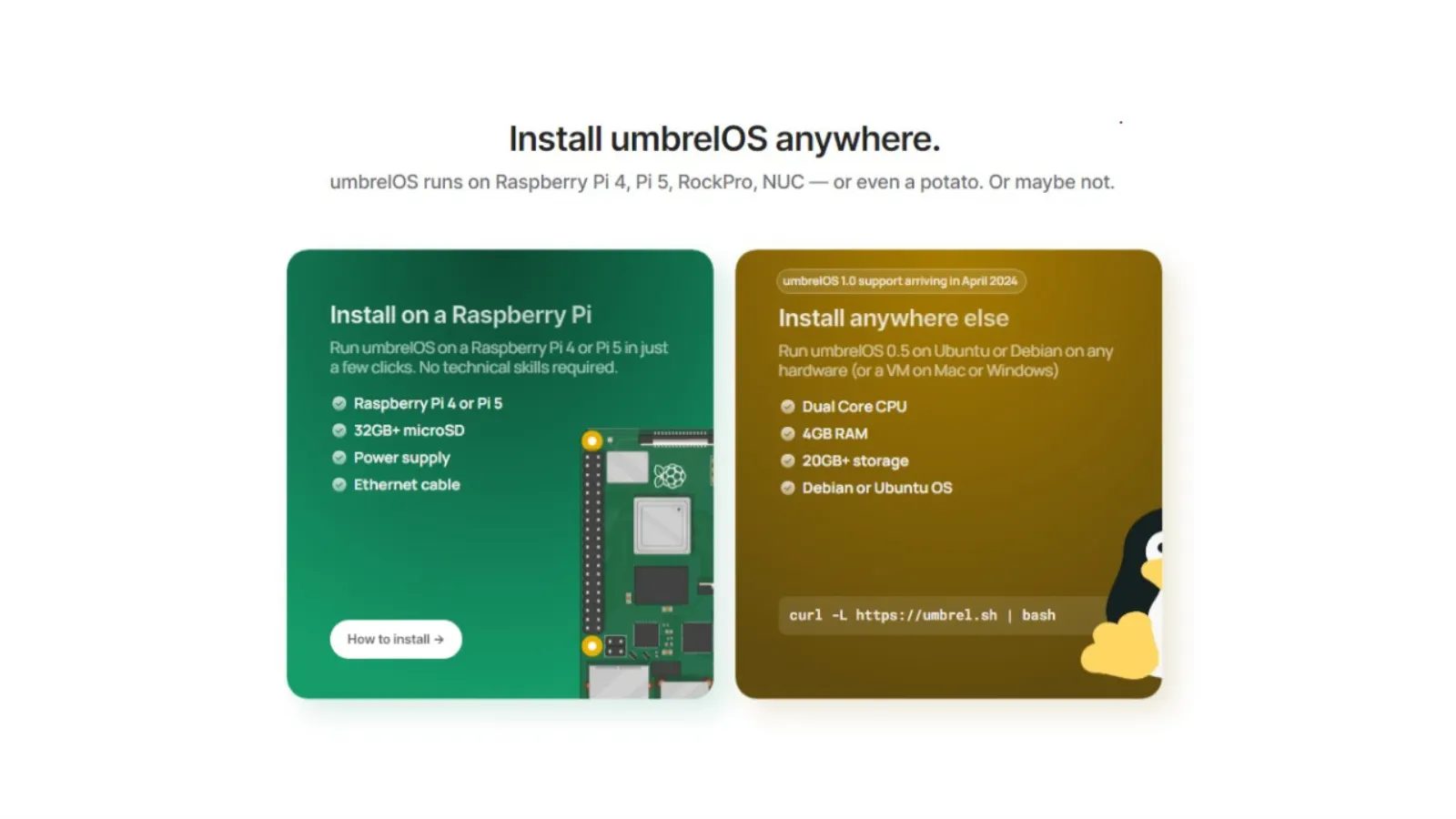 While you’ll need to download a full copy of the Bitcoin blockchain to get started, both Bitcoin Core and Umbrel allow pruning of the blockchain to a smaller size once the ledger is available locally. Even so, because of the size of the Bitcoin blockchain, an external or dedicated hard drive is recommended.