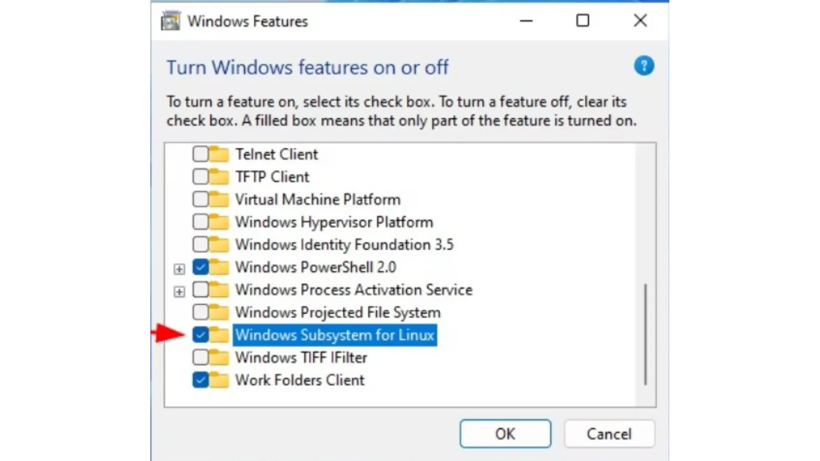 If Windows Subsystem for Linux is not working, go to “Windows Features” in settings and make sure “Windows Subsystem for Linux” is checked.