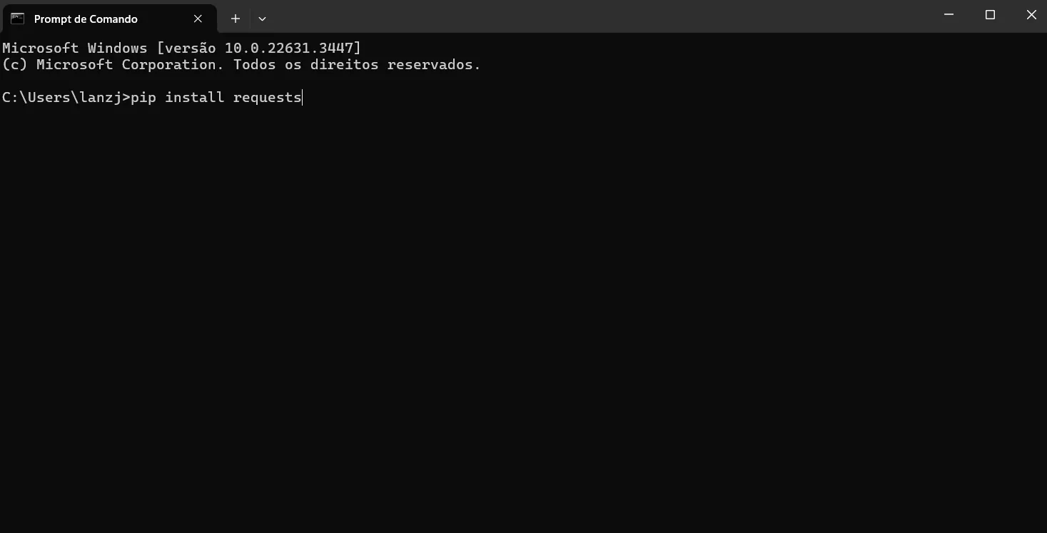 After Python is installed, open your command prompt (search for 'cmd' in your Windows search bar) and type the following command: