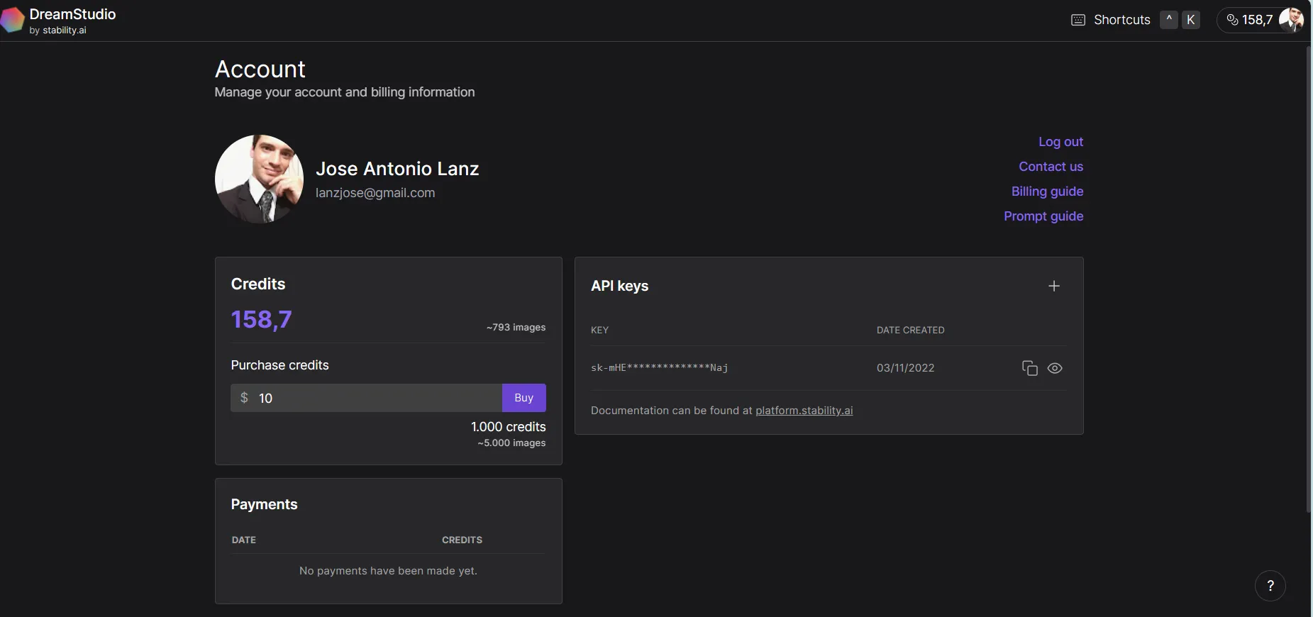 To start, head over to https://platform.stability.ai and either log in with your Google Account or sign up if you're a new user. Then, proceed to https://dreamstudio.ai and create an account using the same email. Once you're done, you'll see free credits in your account, and you can purchase more.