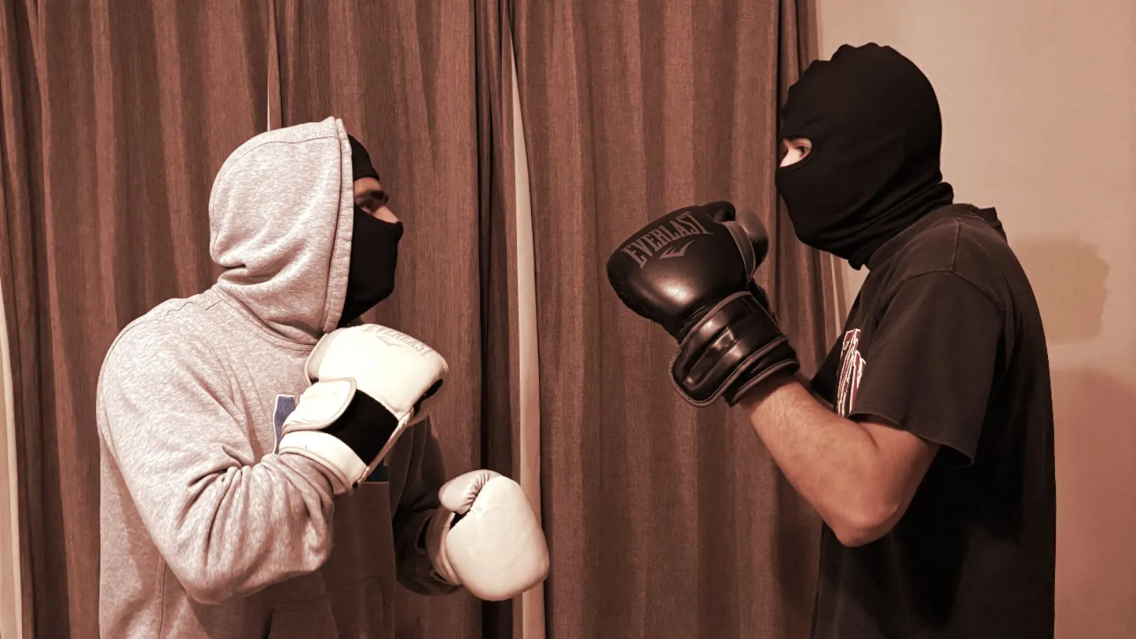 To promote this particular token, FADELIVE, two young men faced off in balaclavas, wearing Everlast boxing gloves and sparring in a tiled dining room rather than a legit boxing ring.