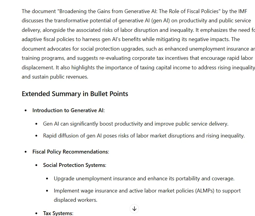 ChatGPT also demonstrated a strategic approach, focusing on the report's summary and conclusions to effectively distill key points. It's a solid way to get a rough understanding of extensive research before in-depth analysis.