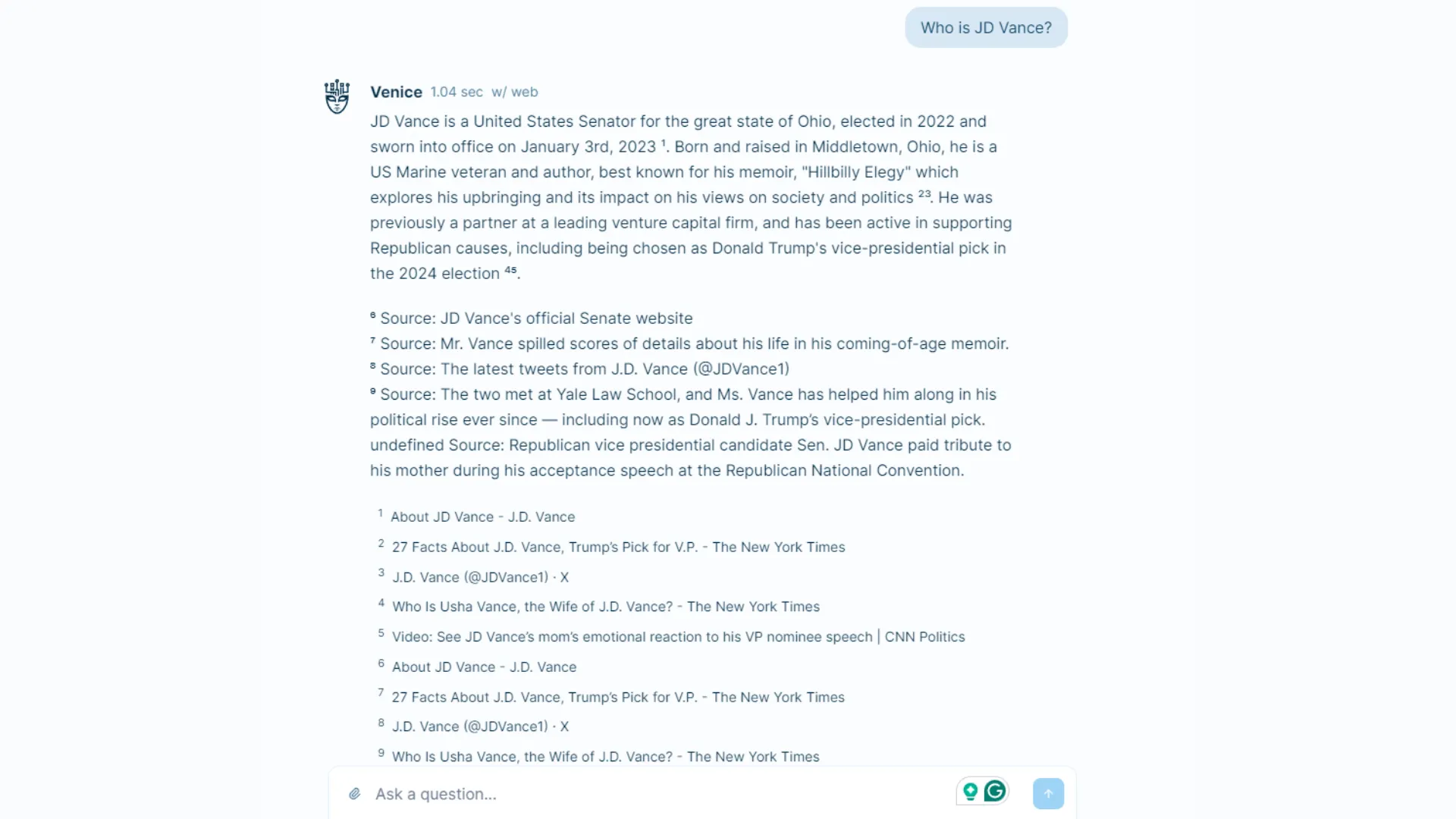 As Baker-Taylor explained, a key feature that comes with search is Venice AI’s ability to cite sources and provide links to the information it provides.
