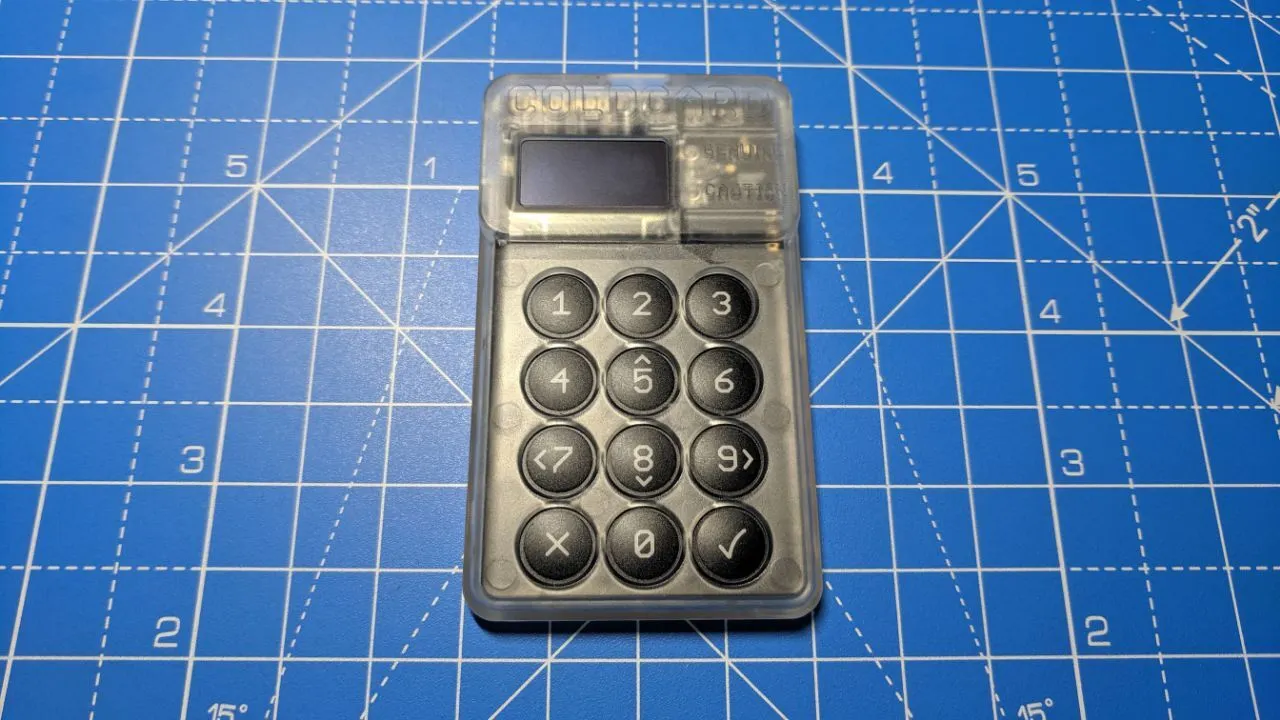 The Coldcard Mk3's large buttons make using the device a simple task. (Image: Decrypt)