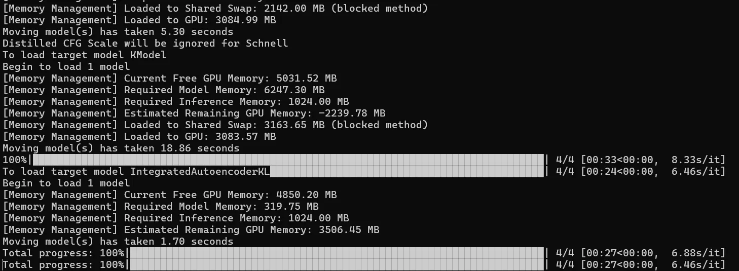 Let's talk numbers: On a humble RTX 2060 with 6GB of VRAM, Flux Schnell in NP4 mode can churn out a 512x768 image in about 30 seconds, versus 107 seconds required by the FP8 version. Want to go big? It'll take about five minutes to upscale that bad boy to 1536x1024 with a high-res fix.