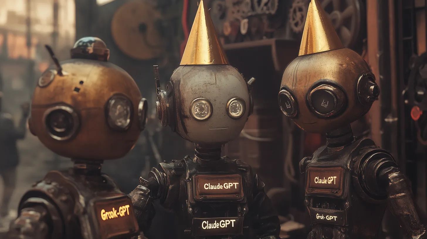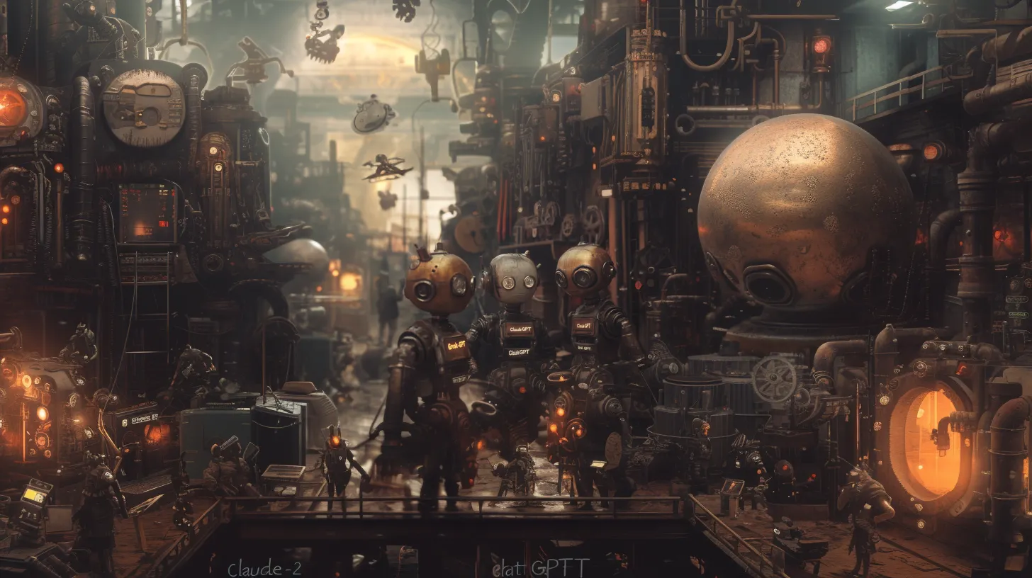 Just as with scale, we recommend fixing your prompt so the new generations don’t lack quality. In this example, we turned a widescreen (16:9) image into a portrait (3:4). To make it seamless, we modified our prompt, asking Midjourney to give our robots full bodies and to generate a table, and the AI gave us this result: