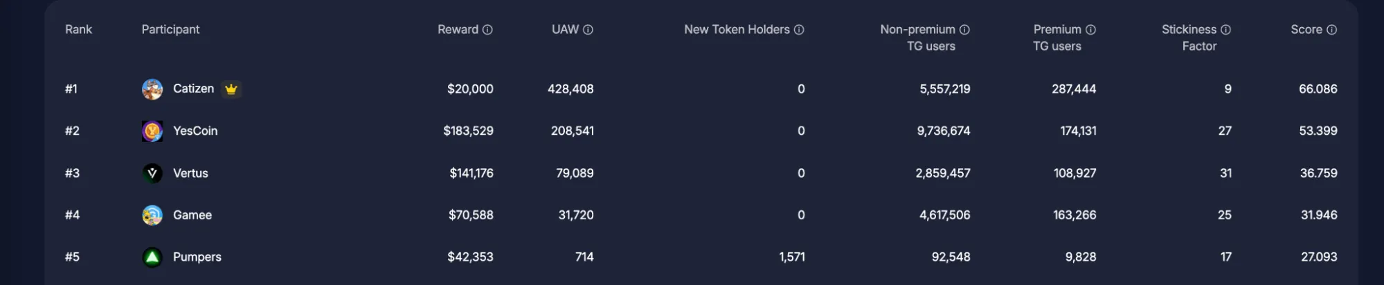 Through combining game mechanics across titles such as WatBird with benefits like the ability to stake its native GMEE token to earn extra in-game WatPoints, GAMEE shot to the #4 ranking in the most recent season of The Open League. Telegram's long-term incentive program for TON teams, users, and traders, The Open League sees TON projects compete against each other for grants and prizes based on their metrics.