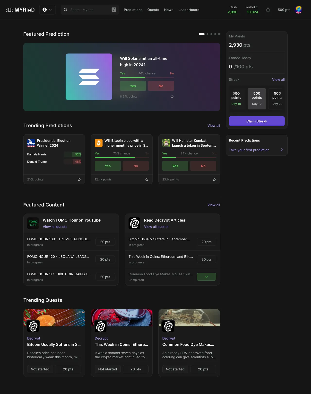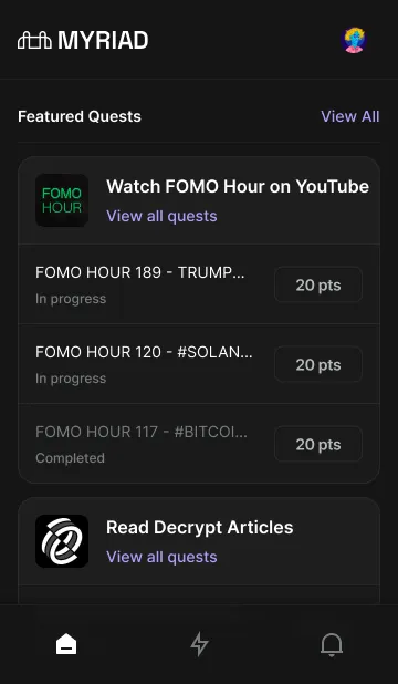 Users can access MYRIAD through a browser extension, mobile app, and website, integrating the MYRIAD platform across the user’s entire browsing experience. Streamlined registration and account abstraction makes the Web3 platform accessible to the widest possible audience, while Quests and personalized content recommendations enhance the user experience.
