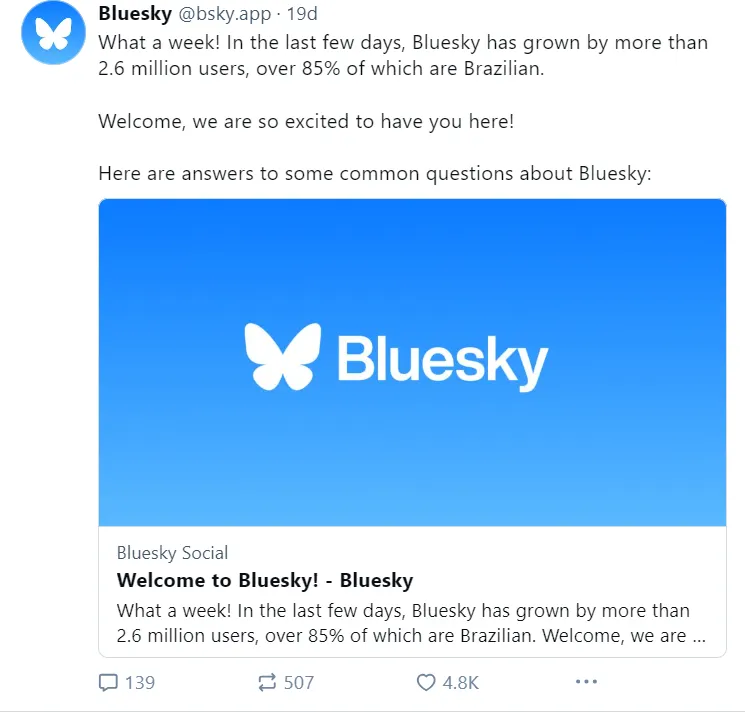 Bluesky’s user base surged to over 10 million in just a few days, a record growth spurt.