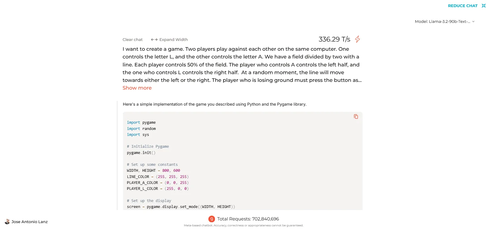 When tested on Groq's platform, Llama 3.2 successfully generated code for popular games and simple programs. Yet, the smaller 70B model stumbled when asked to create functional code for a custom game we devised. The more powerful 90B, however, was a lot more efficient and generated a functional game on the first try.
