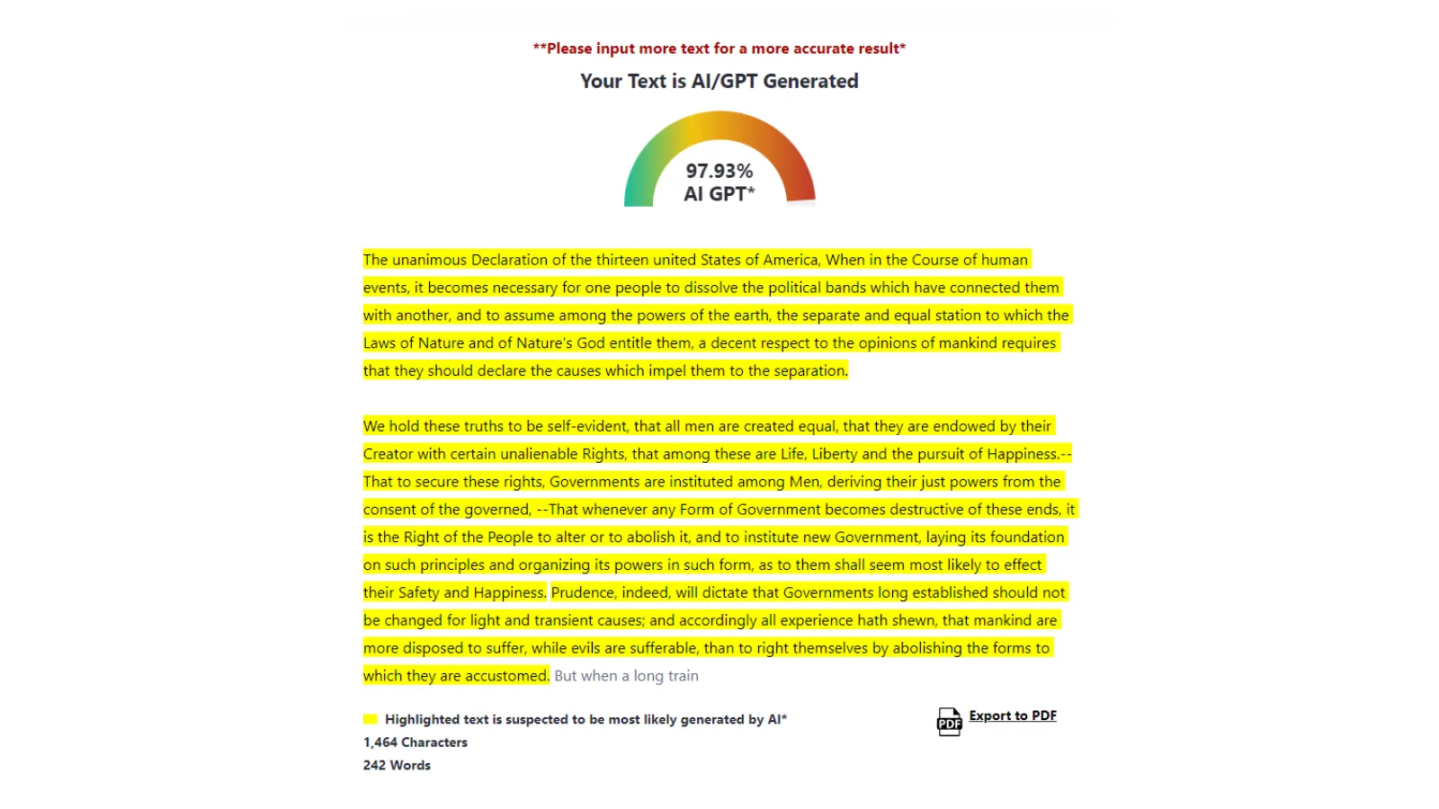 - GPTZero gave the Declaration of Independence an 89% probability of being written by humans.