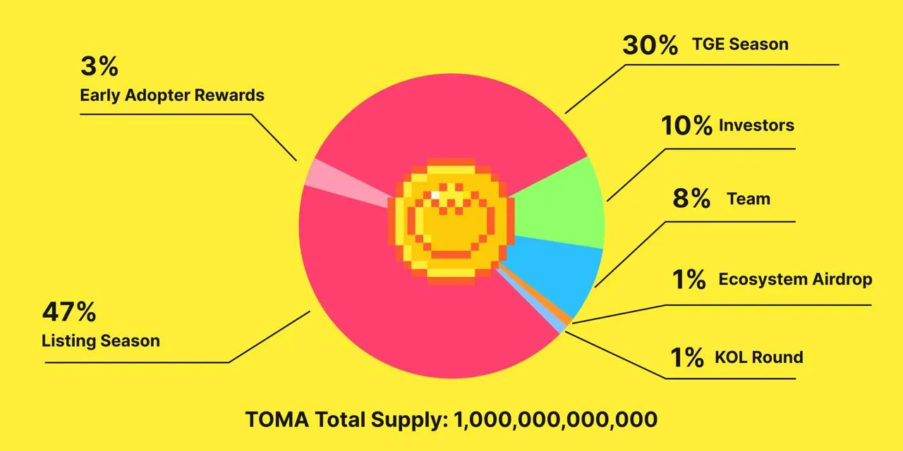 TOMA will have a total supply of 1 trillion tokens on Aptos. Here's a brief look at the tokenomics:
