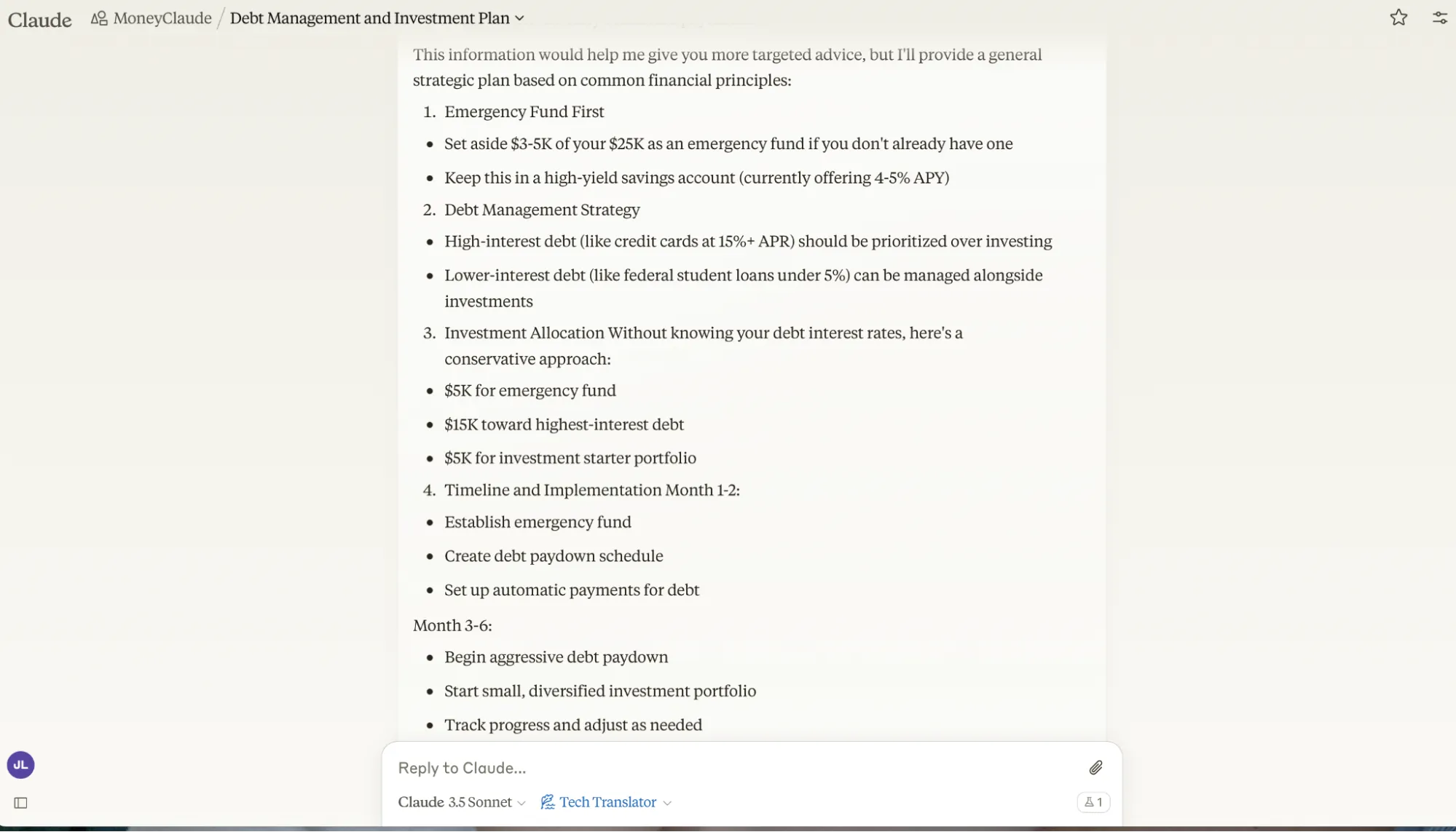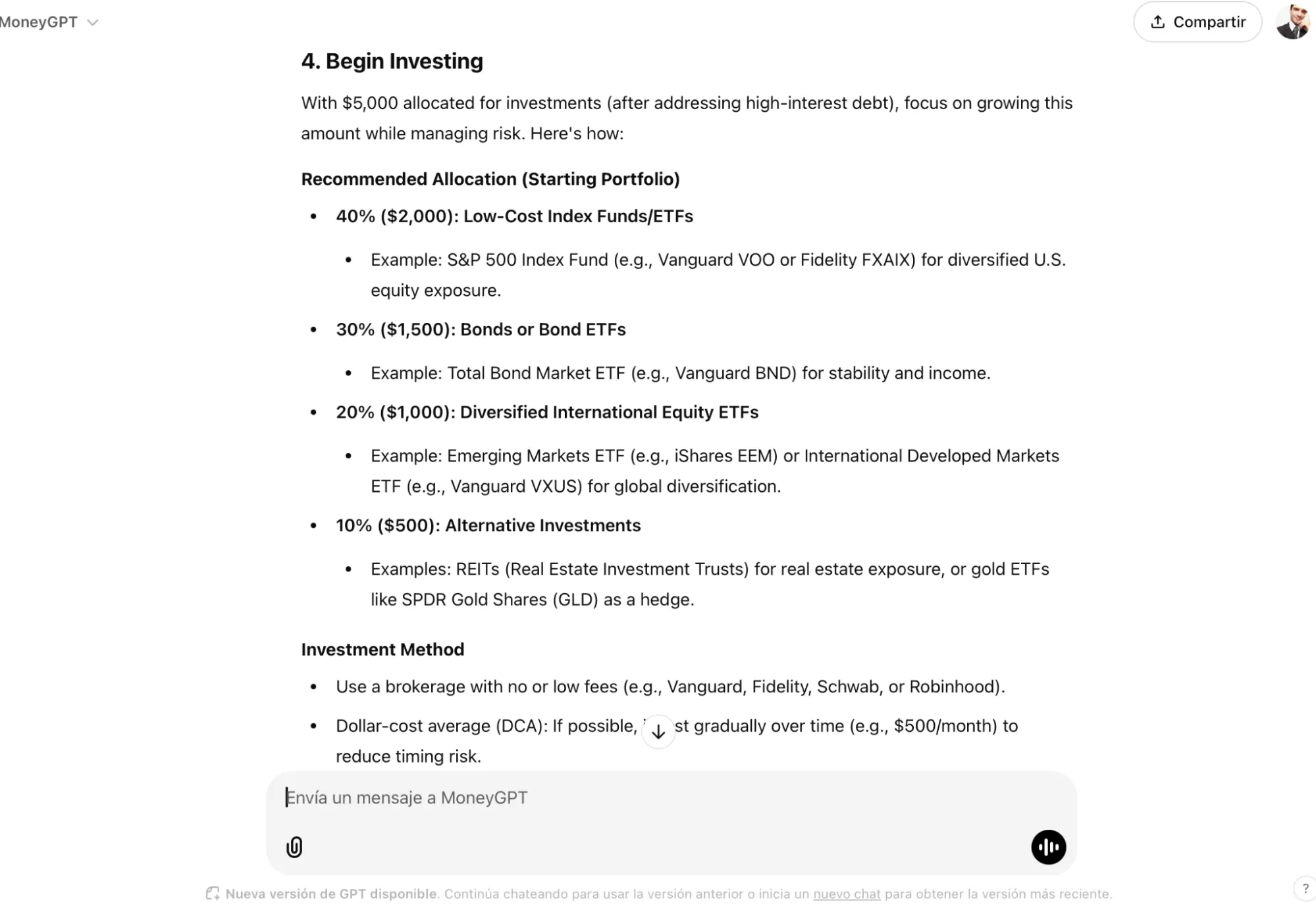 Another interesting feature was its integration of practical tools with theoretical advice. Beyond just suggesting the 50/30/20 rule, it recommended specific budgeting apps and emphasized tax optimization—creating a bridge between high-level strategy and day-to-day execution. The main drawback? It includes assumptions about debt interest rates without seeking clarification.