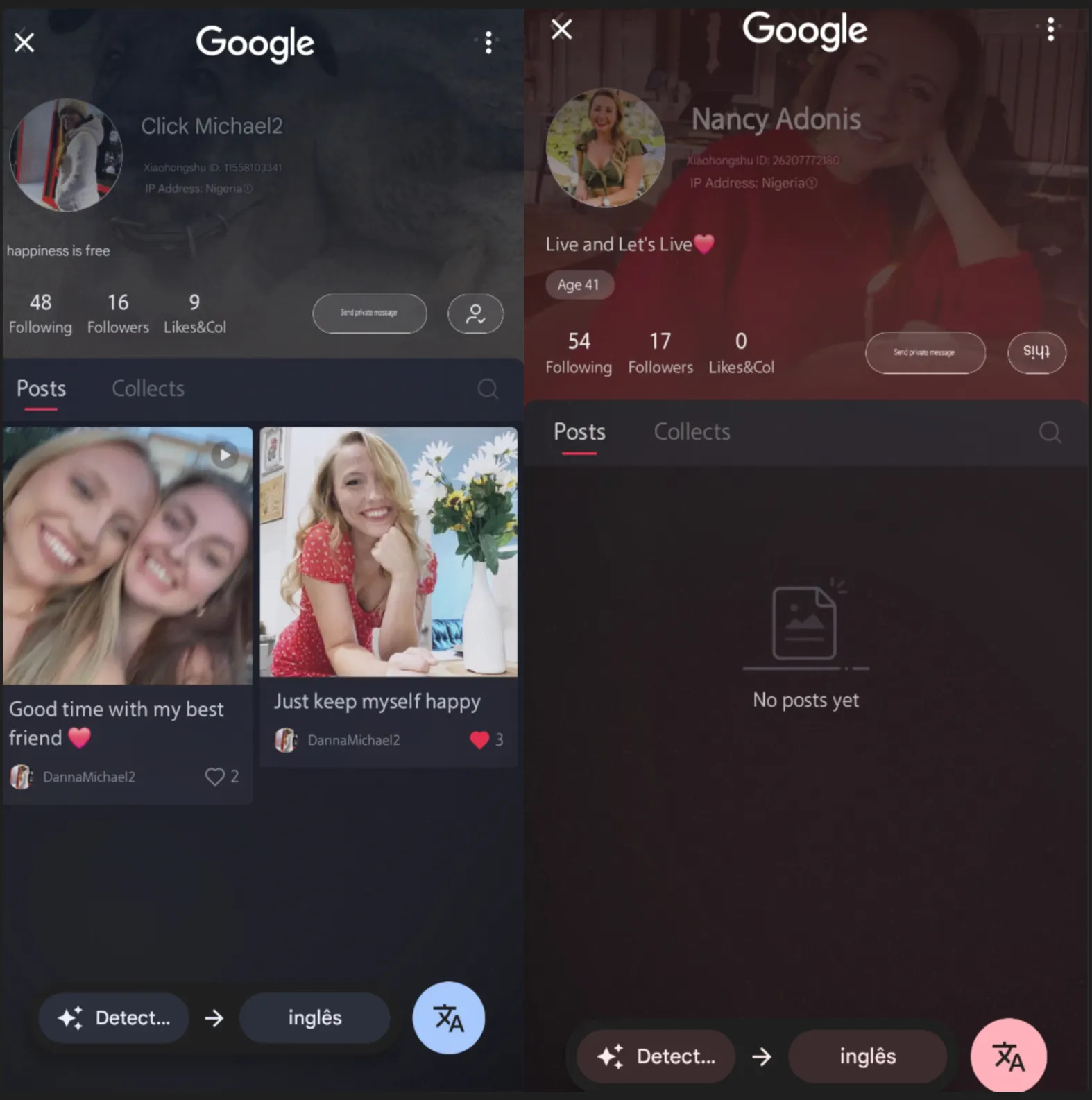 Another strange thing I noticed was that every account had a Nigerian IP address, clear as day in their account details—though you'd miss it if you were only looking at the English words in their bios.