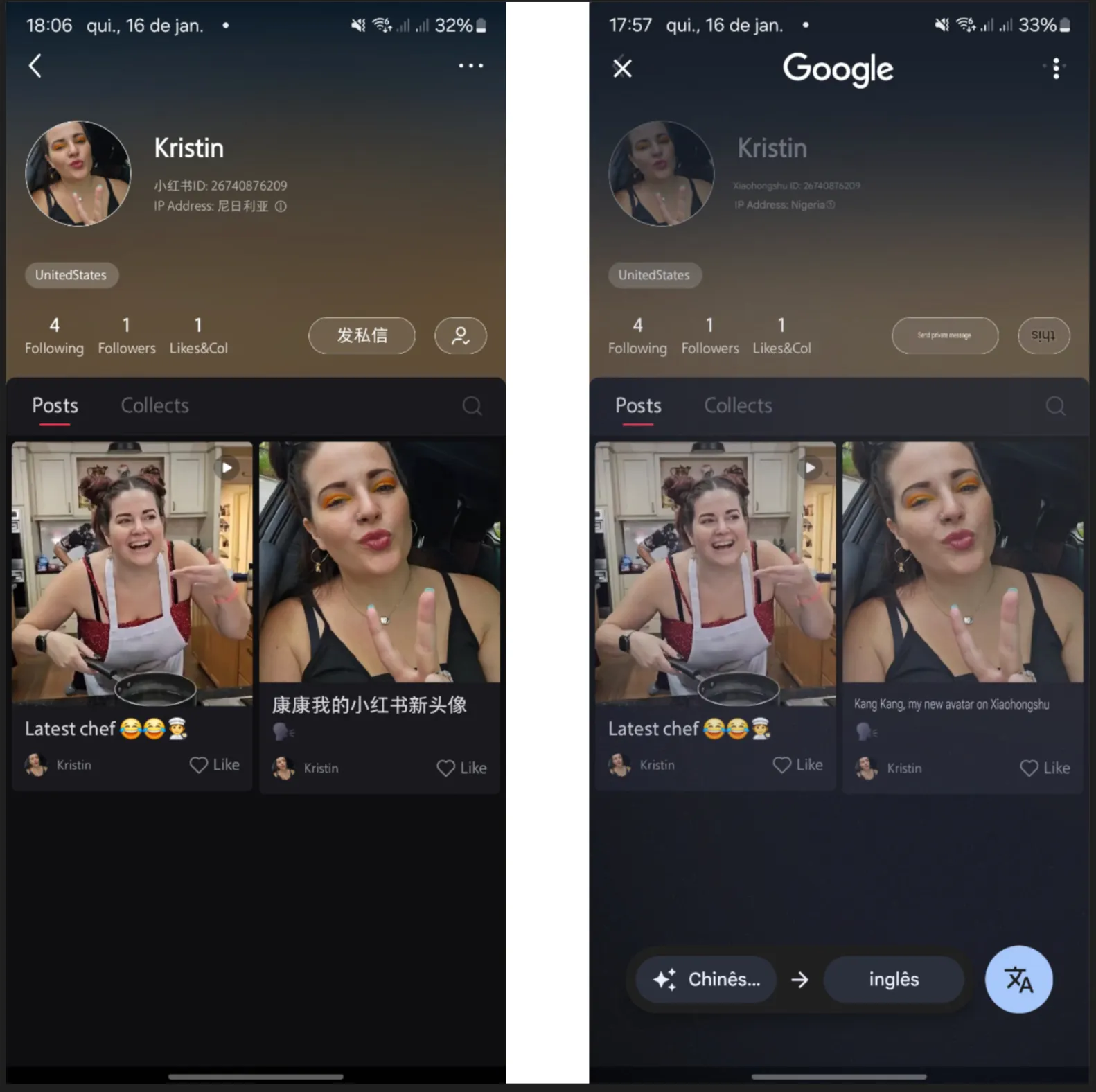 Each account also features details in Mandarin, and if you take the time to examine it, you realize that every RedNote account automatically lists the country of origin, with a country code, for the registrant.