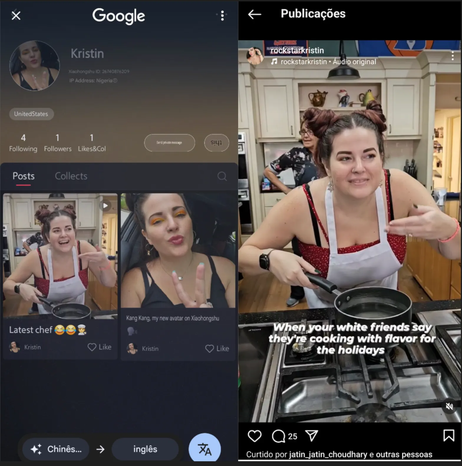 Take this next example. The normal UI shows random Chinese characters and appears as if the profile is from the U.S., according to the bio.