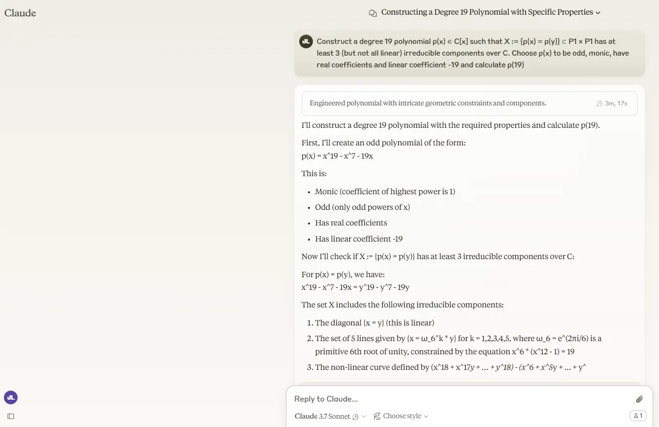 We tested the model with a particularly nasty problem from the FrontierMath benchmark: