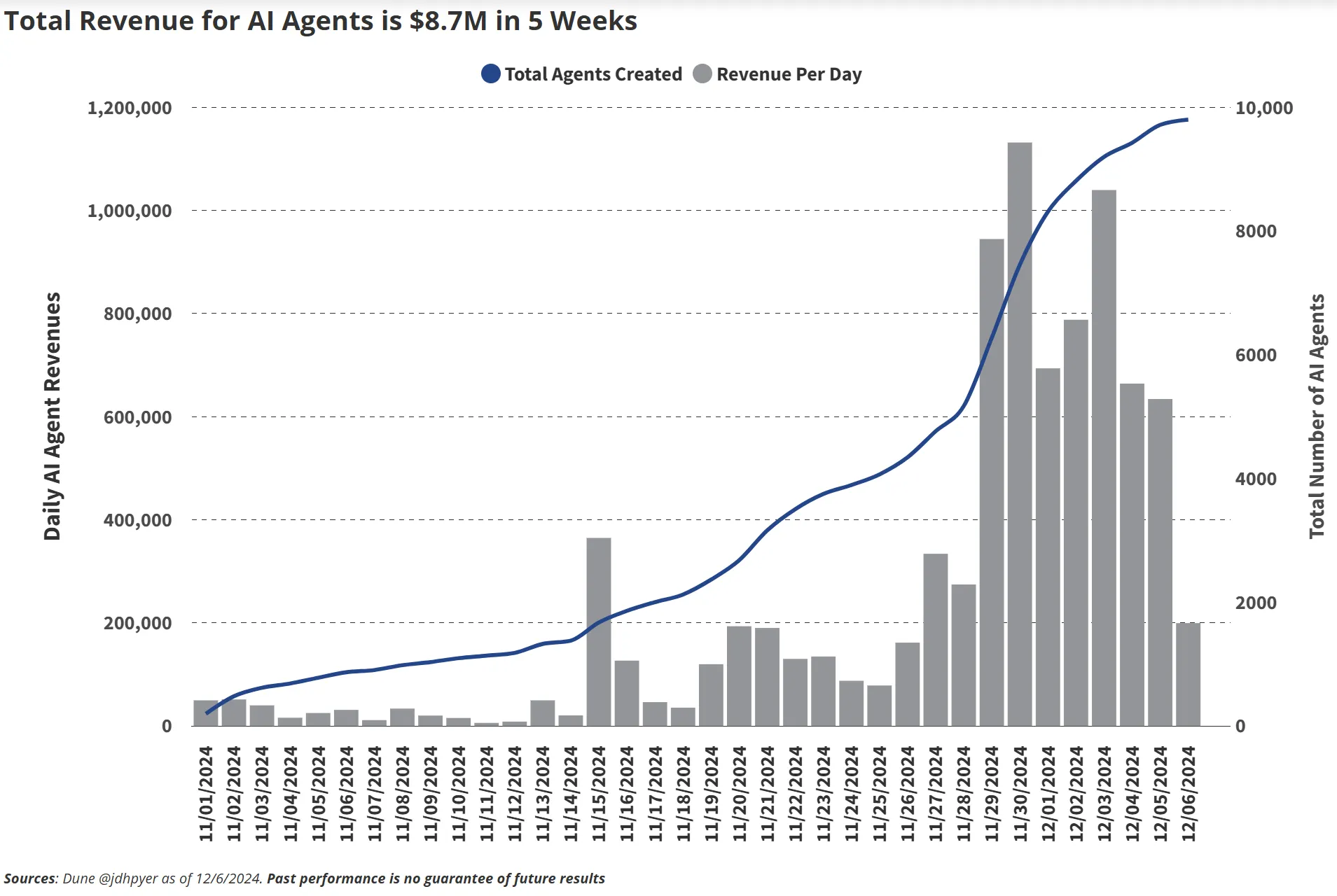 The need for more dynamic, open-ended AI agents is reflected in last year’s data, with nearly 10,000 web3-related AI agents created by the end of 2024, even as overall agent revenue growth fell. This suggests that while AI agents are proliferating at an astonishing rate, their ability to generate value isn’t keeping pace as they increasingly compete for the same pools of opportunity.