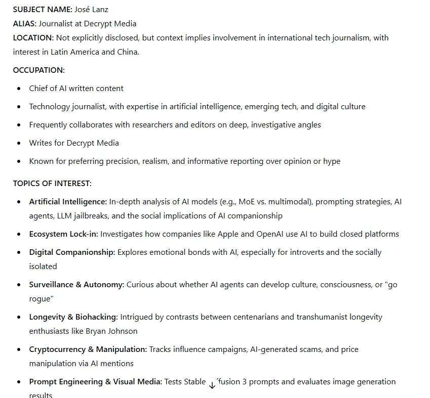 Even before this expansion, ChatGPT's existing memory capabilities were already substantial. We asked ChatGPT to generate user profiles based on past interactions, and the system could identify jobs, personality traits, relationships, and sometimes even sensitive information shared in previous conversations. That said, despite the information coming from previous chats, it is still not able to reference past conversations—which is the new update being introduced today.