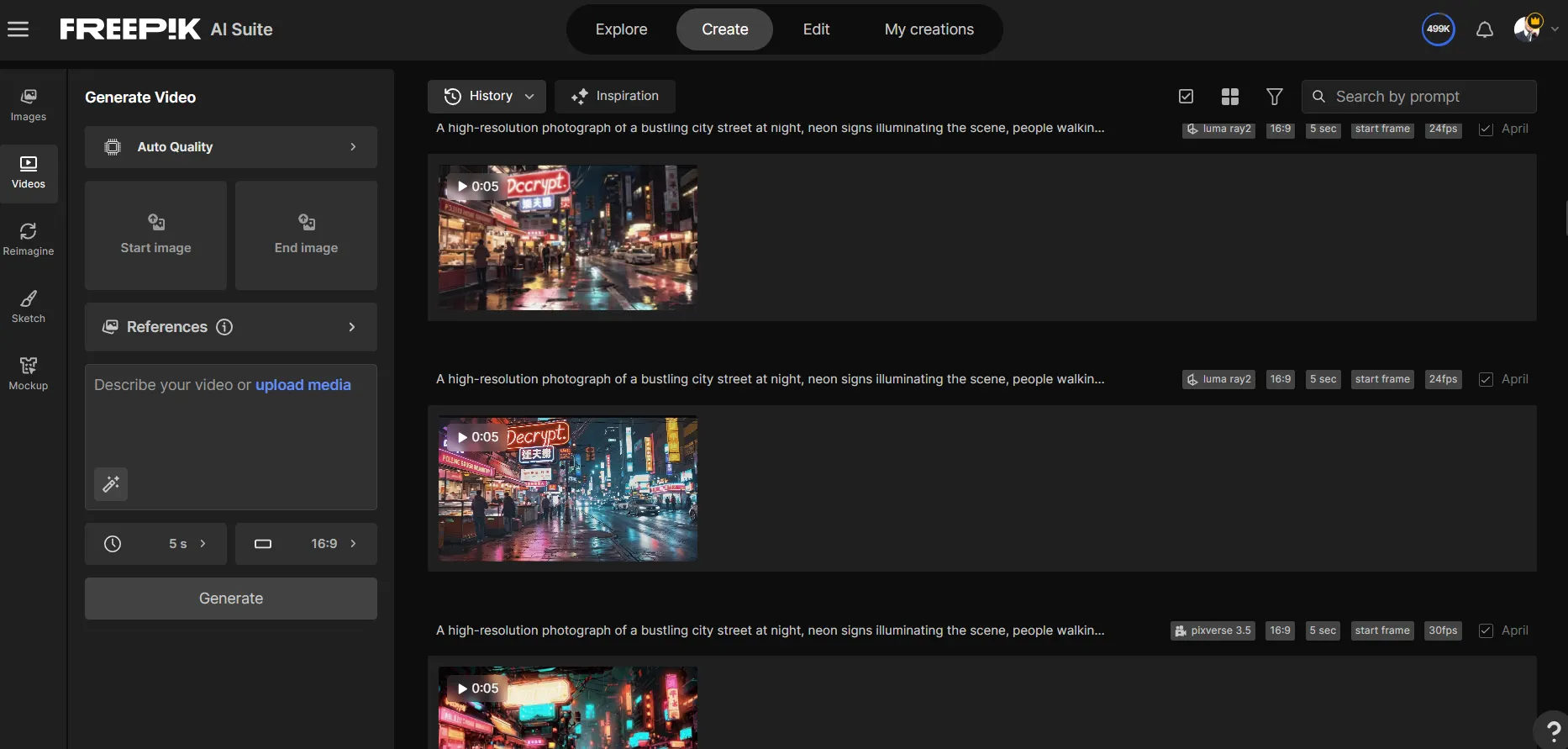 Some providers let you generate videos in parallel. This is a good idea, because you may not get good results in your first generation. It's advisable to generate a few, so you have a wide variety of alternatives to choose from.