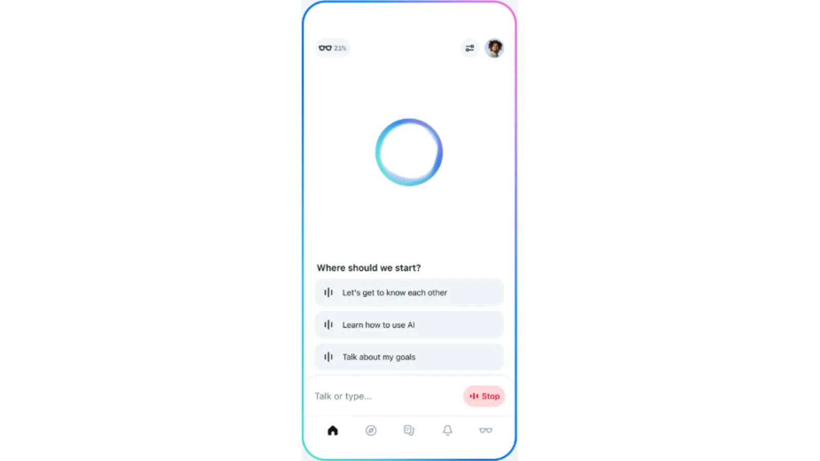 Voice controls are accessible next to the user’s profile picture. Users can switch between the default AI voice and celebrity voices, including Judi Dench, Kristen Bell, John Cena, Keegan-Michael Key, and Awkwafina.