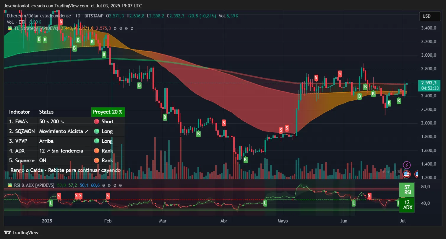 Ethereum is slightly up today, with a small movement to its current price of $2,592 that comes after a jump yesterday that recovered prices from daily lows of $2,374.