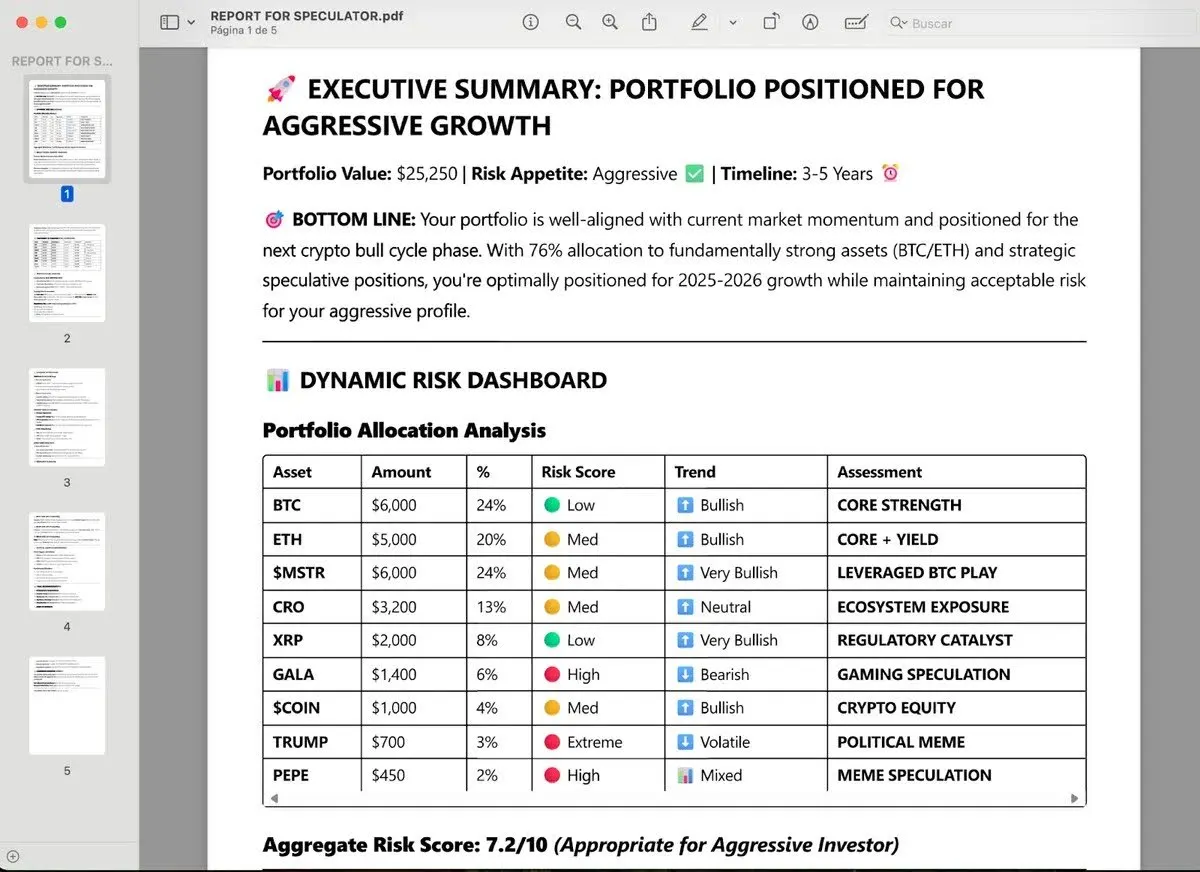 Still, for hobbyists, it’s fun to tinker with this stuff. If you’re interested in exploring AI-assisted trading without the full automation, Decrypt has developed its own prompts, just for fun—and clicks, probably. Our Degen Portfolio Analyzer delivers personalized, color-coded risk assessments that adapt to whether you're a degenerate trader or a conservative investor. The framework integrates fundamental, sentiment, and technical analysis while collecting user experience, risk tolerance, and investment timeline data.