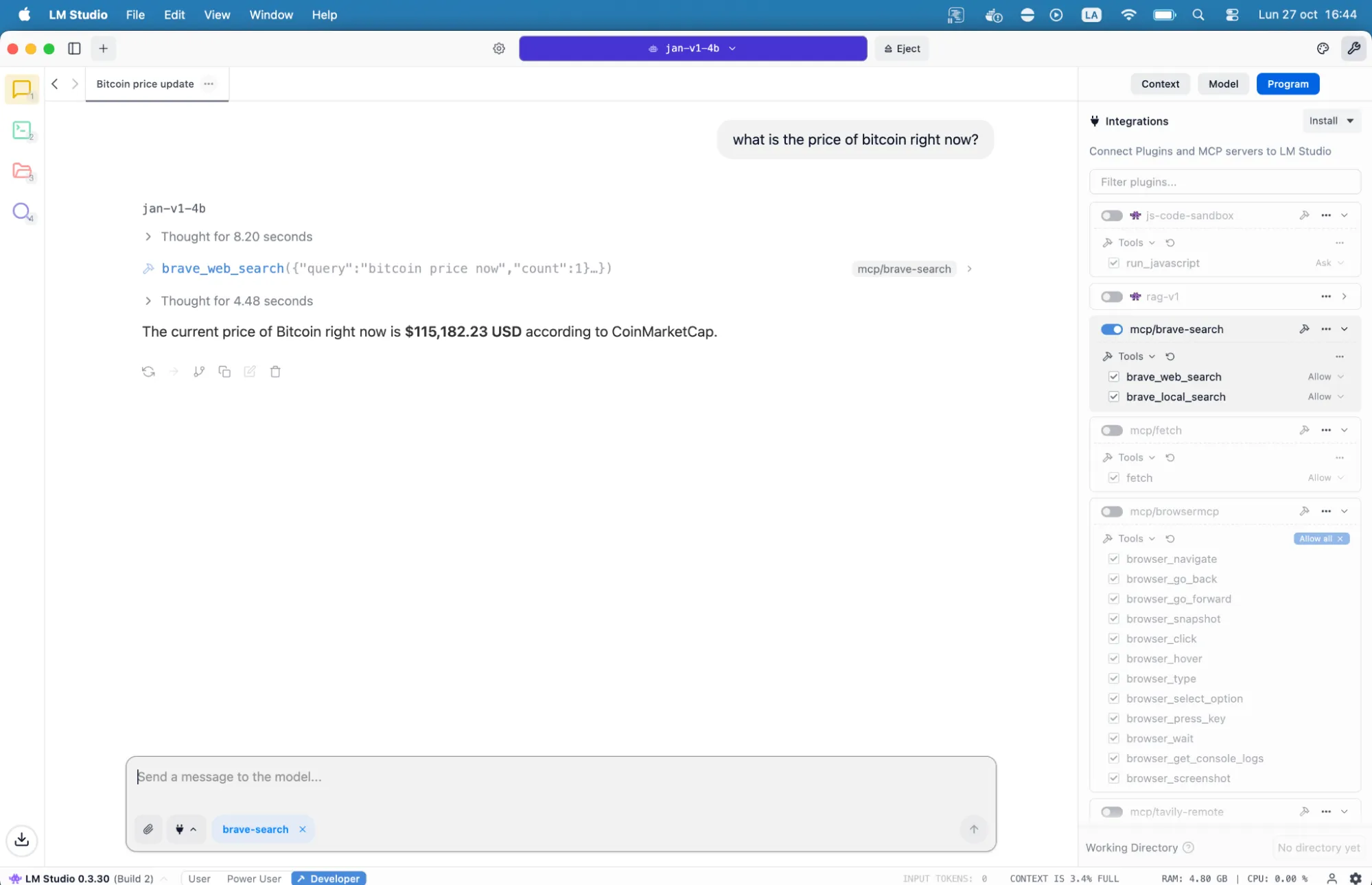 That’s all. Now your local AI can browse the web using Brave. Ask it anything and it will give you the most up-to-date information it can find.