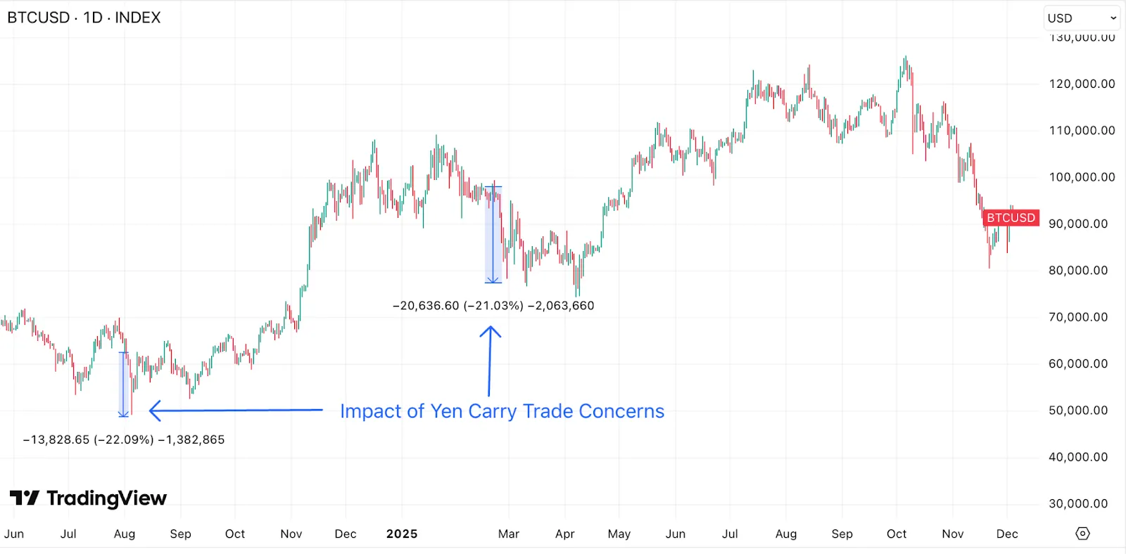 Otychenko feels this could put “the yen carry trade”—where traders borrow cheap money from Japanese markets when their interest rates are low to make trades—under pressure. Otychenko points out that during August 2024 and February 2025, Bitcoin saw brief 20% price drops and rising ETF outflows during similar concerns over the yen carry trade environment.