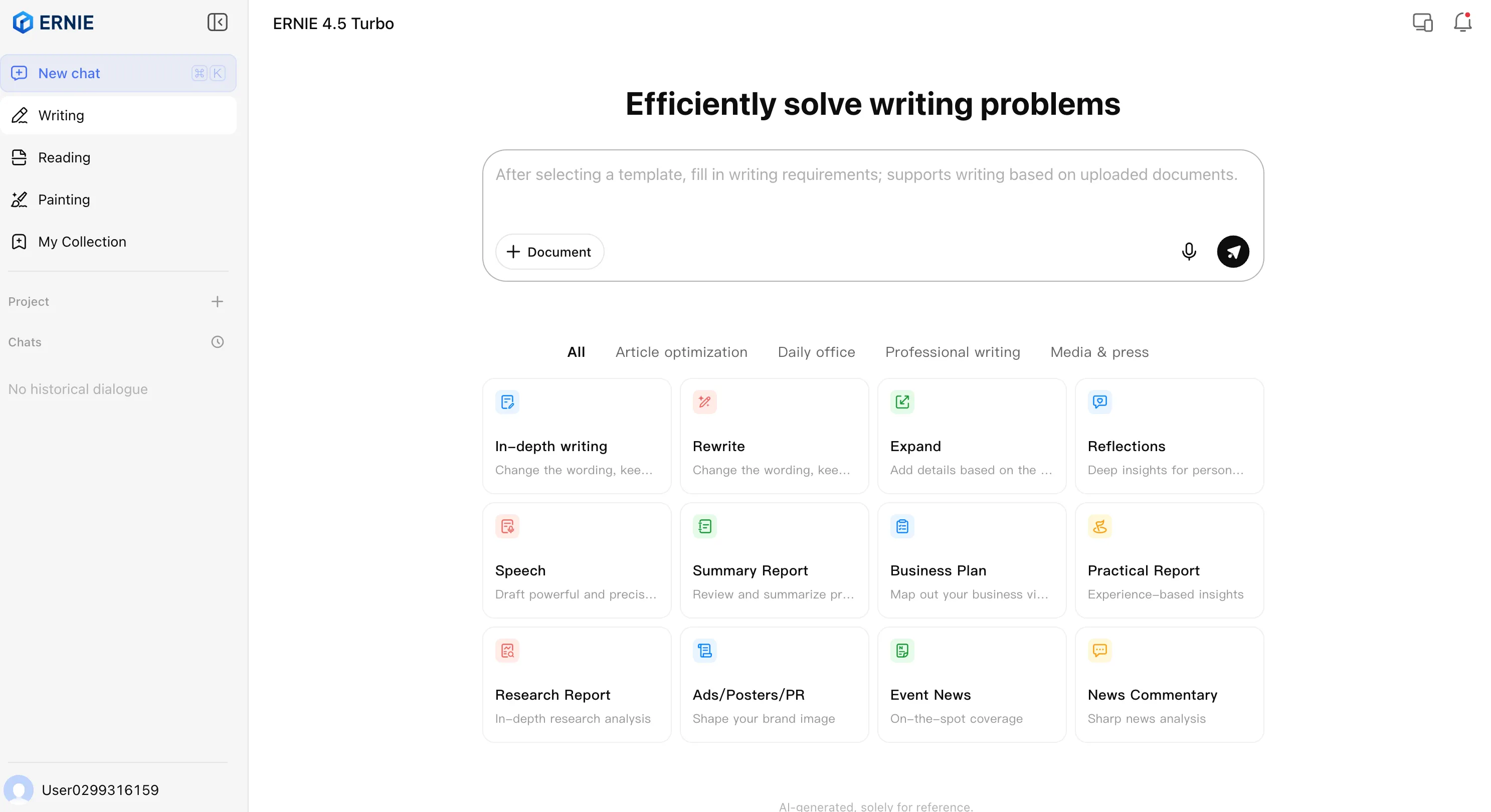 Beyond the pure raw power of the LLM, the UI for the ERNIE chatbot is pretty user-friendly and packed with pre-customized features that help users get more tailored results based on their needs. For example, instead of making users deal with complex prompts for different tasks, the chatbot offers separate sections for writing, reading, image editing, and general use. It’s the same core model, but the variations in the system prompt and tweaks make each task easier to accomplish.