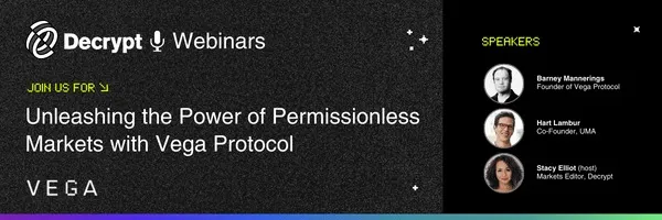 Want to learn more about crypto derivatives? Sign up for Decrypt’s upcoming webinar, “Unleashing the Power of Permissionless Markets with Vega Protocol,” on June 5!