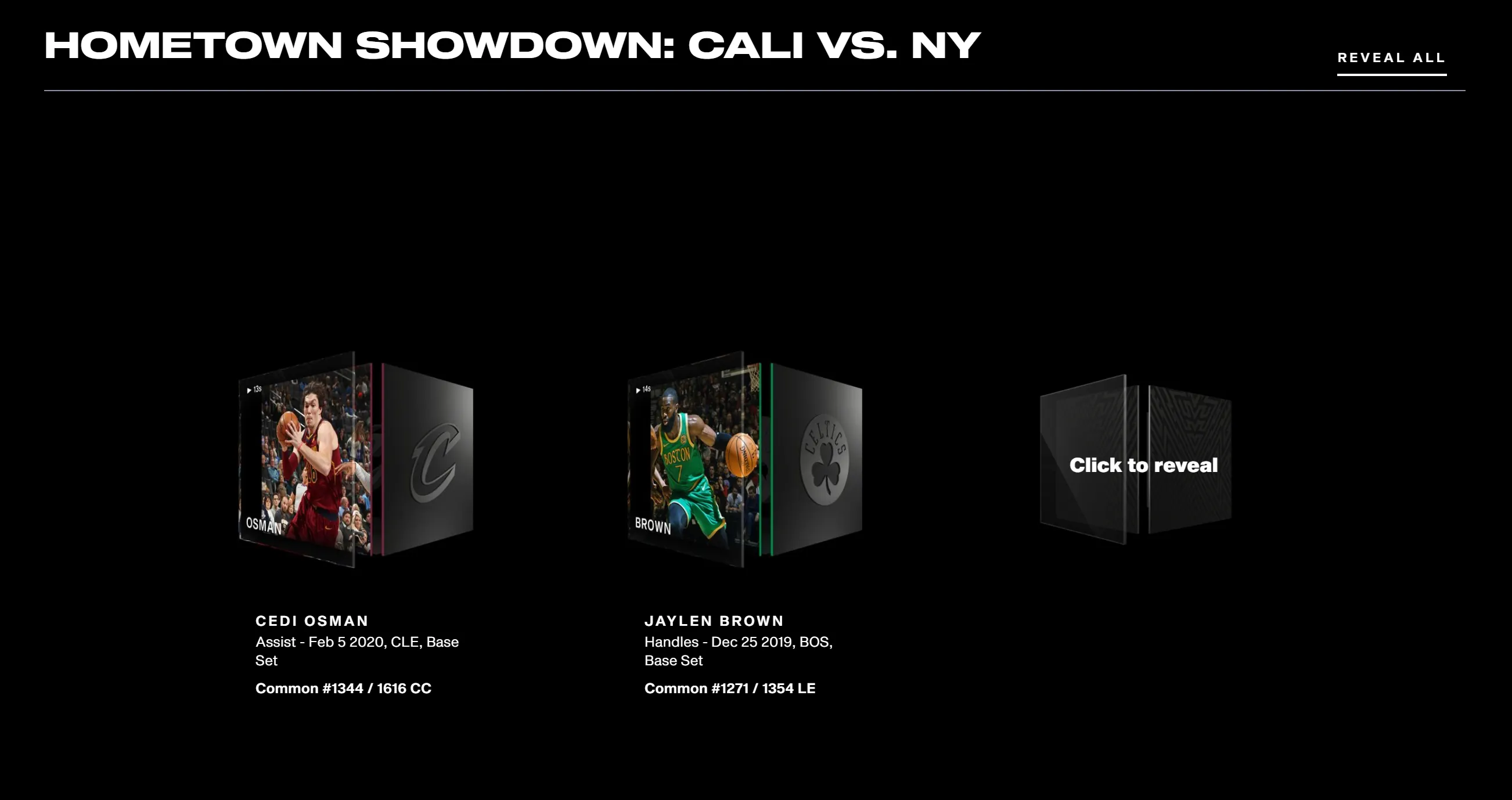 The packs here are much pricier, however: a common “Hometown Showdown: Cali Vs. NY” pack—the only one available as of Wednesday afternoon, when I’m writing this—was $9 and came with three moments. Meanwhile, a rare Premium Pack cost $24 and came with six moments, one a rare Metallic Gold LE edition. On the other hand, a sold-out Holo MMXX drop pack with 10 included moments went for $230.